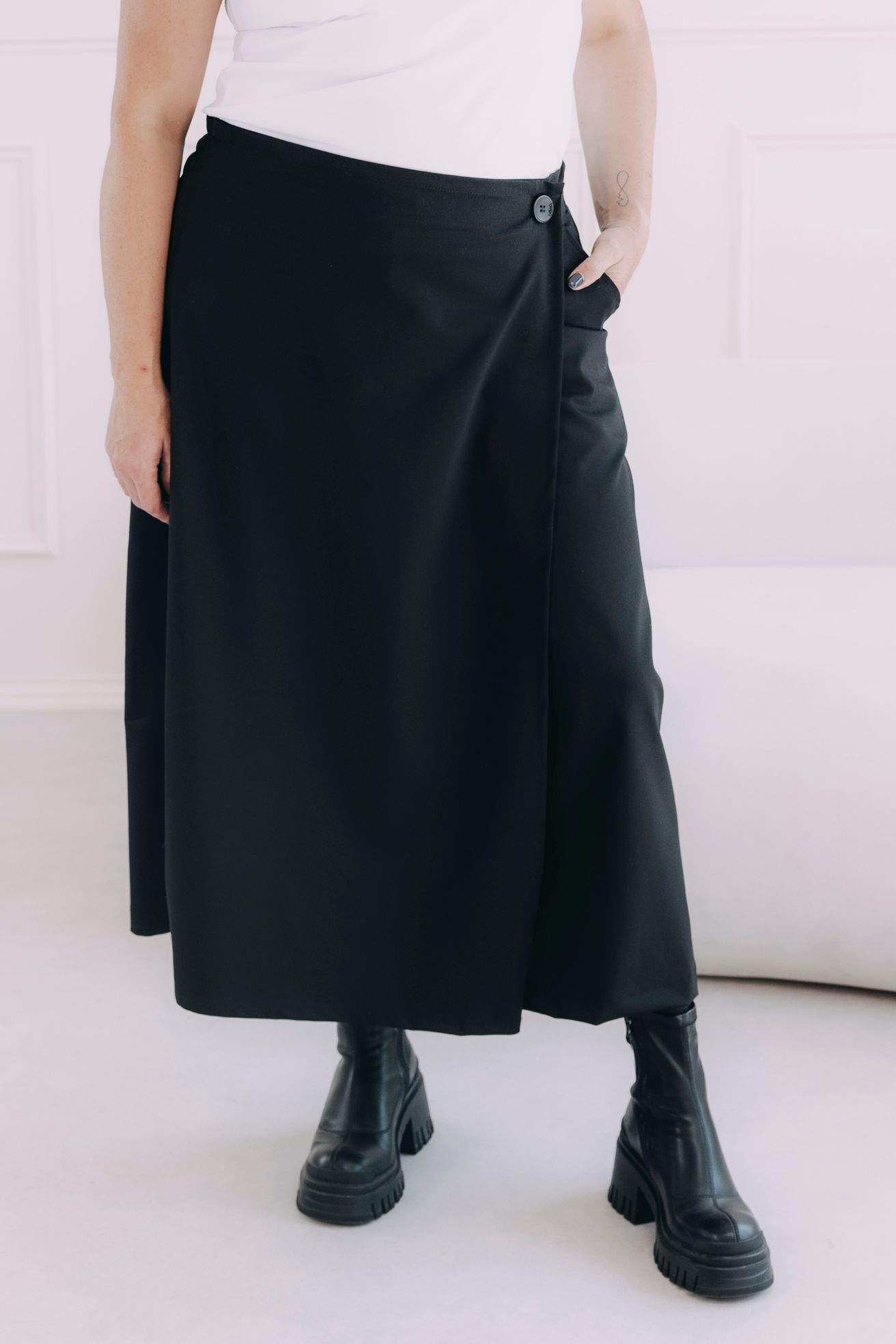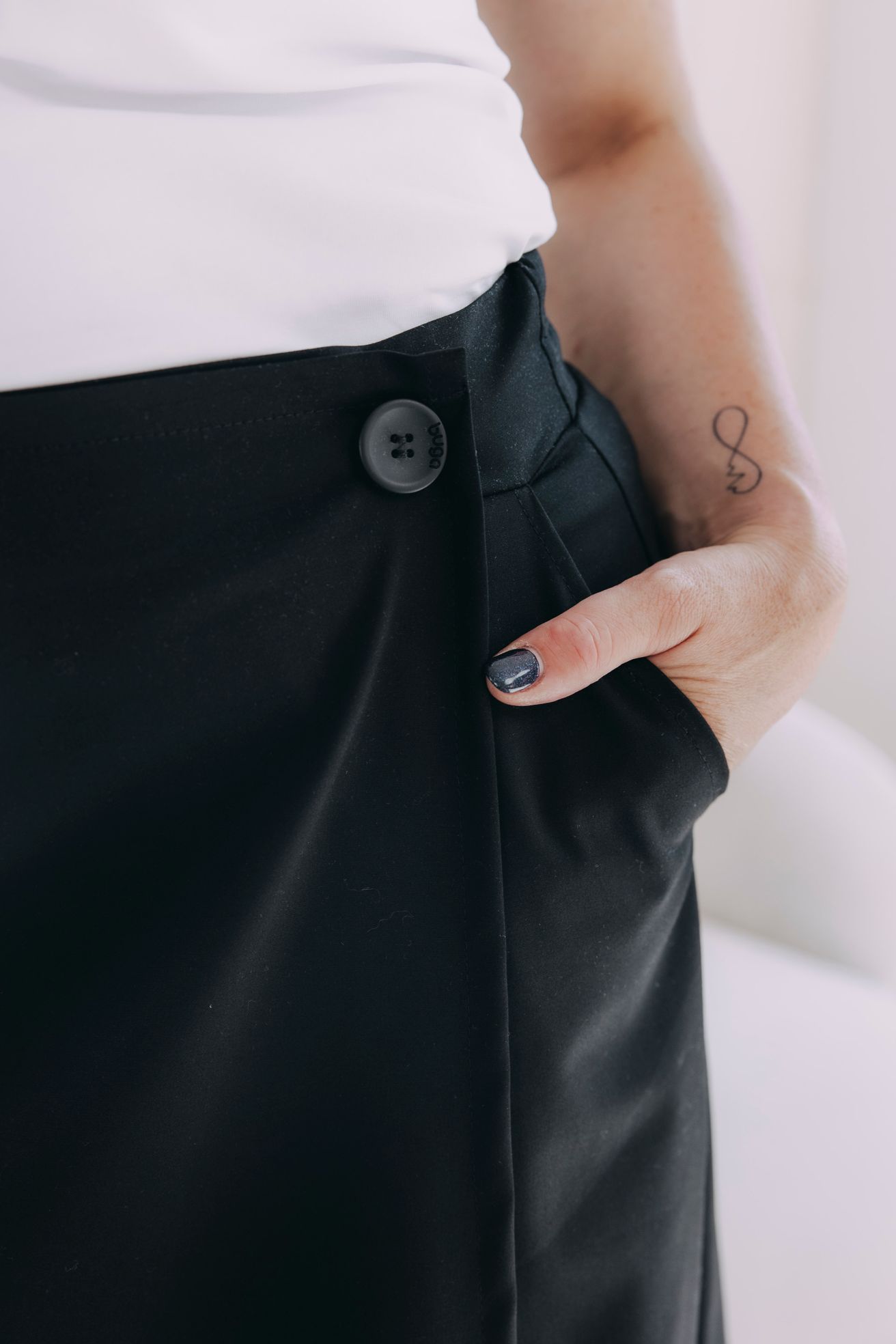 Nohavicová sukňa Nakisai je dokonalou poctou minimalizmu. Oslňte pútavým outfitom. Jeden gombík, jedno vrecko. Vpredu sukňa, vzadu nohavice!