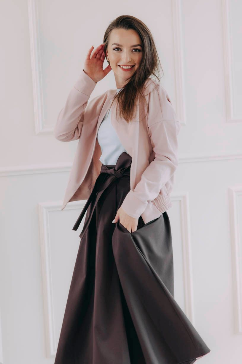 Sú dni, keď nemáte chuť experimentovať, ale aj tak chcete vyzerať výnimočne. A presne vtedy príde vhod outfit, ktorý je farbami nežný, ale charakterom výrazný, elegantný, ale bez zbytočnej vážnosti. Hlavnú rolu hrá sukňa Mawe Brown. Jej áčkový strih, výrazný pás a bohaté riasenie pôsobia nadčasovo a sebaisto. Baby blue top Laima jej dodáva sviežosť, ako keď ráno rozhrniete závesy a pustíte dnu denné svetlo. A keď to celé doplníte blejzrom Nomusa v odtieni jemnej ružovej, vznikne outfit, v ktorom vybavíte pracovné stretnutie, ale po ňom môžete zájsť do galérie, či stráviť popoludnie v meste s niekým, koho máte radi. Obliecť sa jemne môže byť niekedy ten najsilnejší krok.