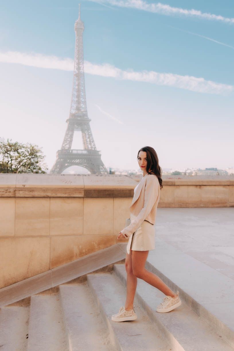 Parížanky majú úžasný cit na to, aby zvýraznili svoje prednosti. Pokiaľ sa v sukni necítite práve vo svojej koži, kraťasy Cali sú skvelým a sofistikovaným riešením – vďaka nápadito riešenému prednému dielu sú totiž trés chic. Na letné mesiace sa perfektne hodí svetlá béžová, ktorá – verte alebo nie – naozaj nechýba v žiadnom francúzskom šatníku. Príjemné sako Tumia zladené tón v tóne outfit perfektne zjednotí, takže si pod ním hravo vystačíte aj s klasickým bielym topom, akým je napríklad Idowu. A výrazný doplnok? Okrem vašej osobnosti skvele zahrá „len“ červený rúž. Doslova esencia elegancie, nemyslíte?