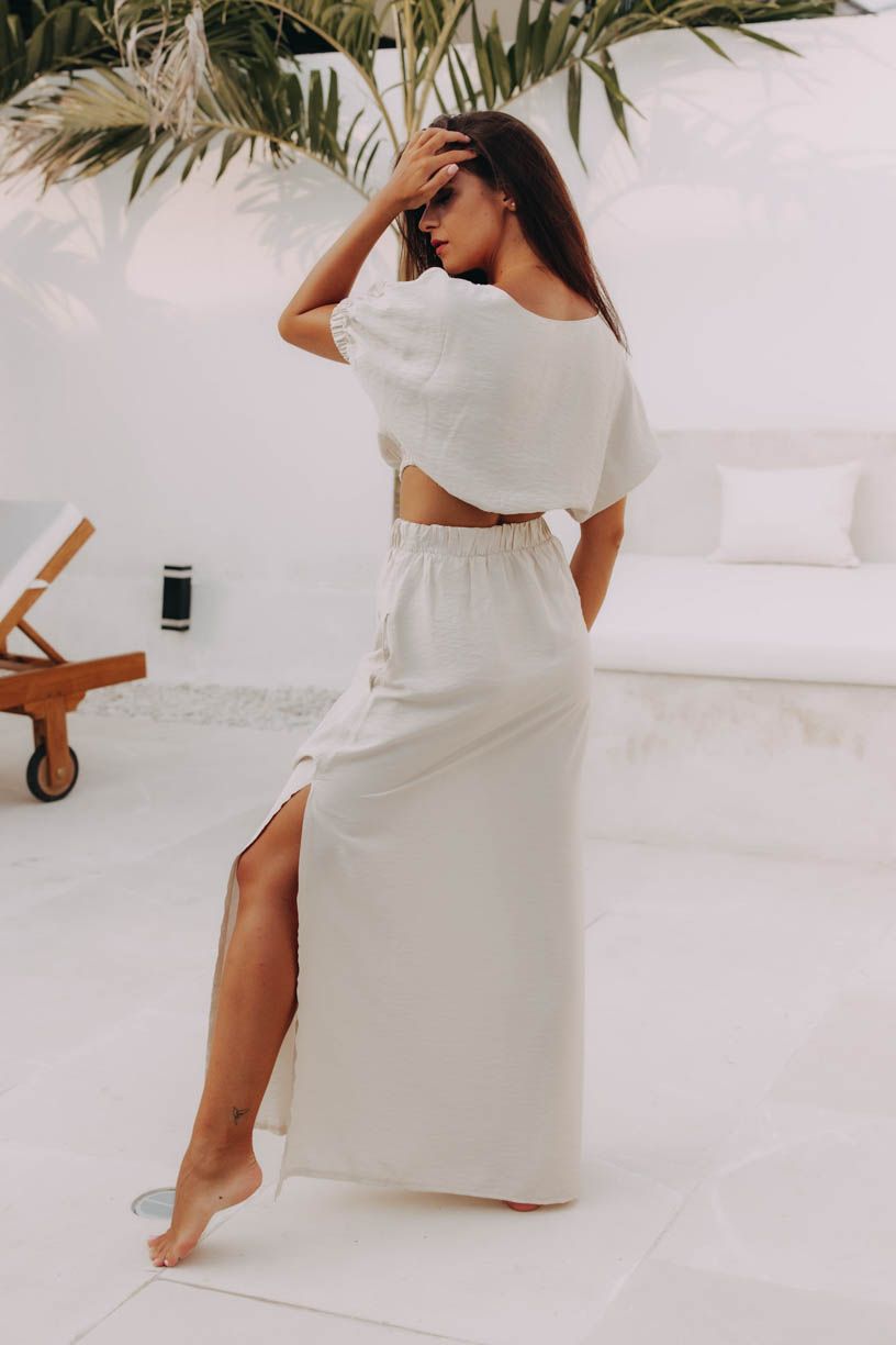 Jeden z najpôvabnejších topov, ktoré môžete mať vo svojom cestoveteľskom arzenáli, je bezpochýb Putu Geeti. Krátke netopierie rukávy s balónovým efektom plus guma na podkasanie, to je jednoducho jasný wow efekt, či už k nemu zvolíte kraťasy, alebo sukňu. Putu Kimaya je mimochodom maxi sukne, ktorú vynosíte snáď všade a vo všetkých možných kombináciách. Chladivá viskóza si o to navyše priam hovorí. Čo na tento outfit hovoríte vy?