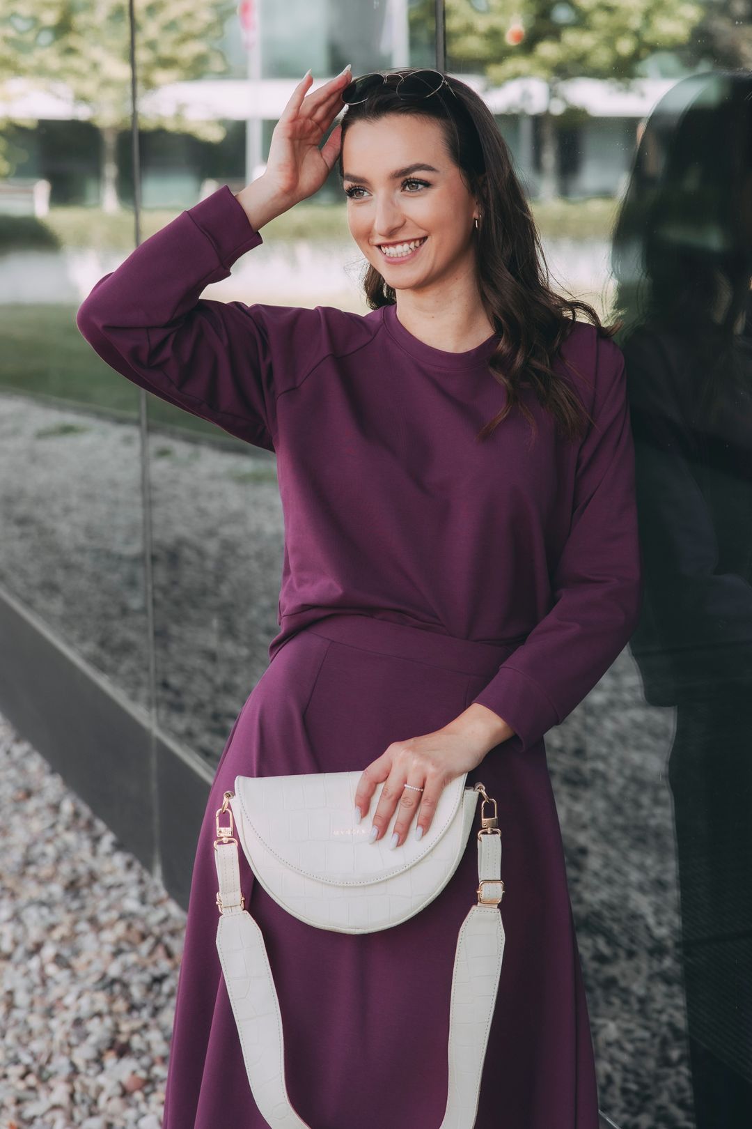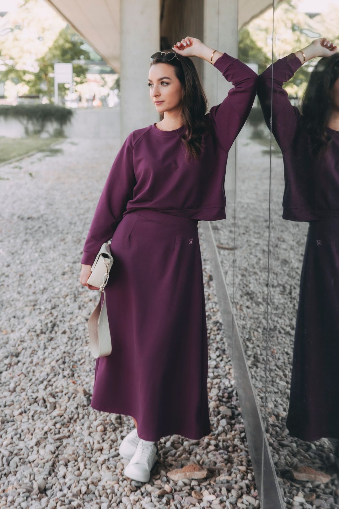 Sukňa Mosi, mikina Mosi a tričko Malik v tónoch bordó sú ako cuvée namiešané z vášne a elegancie. Ráno vás outfit objíme, keď bežíte po smoothie, a aj keď práve stojíte na semafore, svet okolo vás pôsobí ako veselý film. Prechádzate trhom, spomalíte pri pouličnom hudobníkovi a skoro zabudnete, že máte stretnutie – bordó jednoducho vie pritiahnuť pozornosť a pridať každému momentu iskru. Večer, keď sa mesto utíši, stále pôsobíte elegantne, a pritom hravo – každý krok je váš malý happening a každý pohľad odráža vašu energiu.