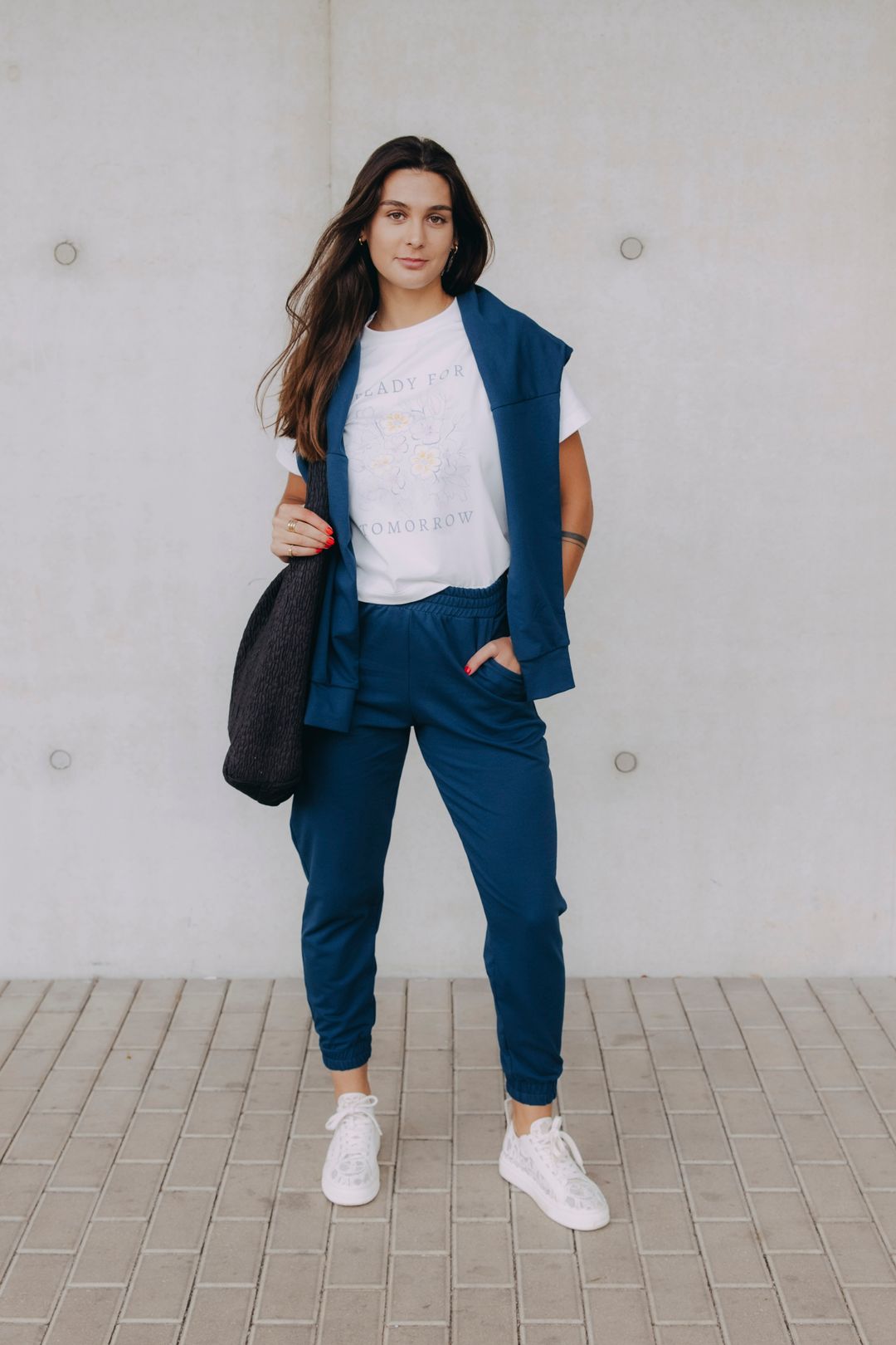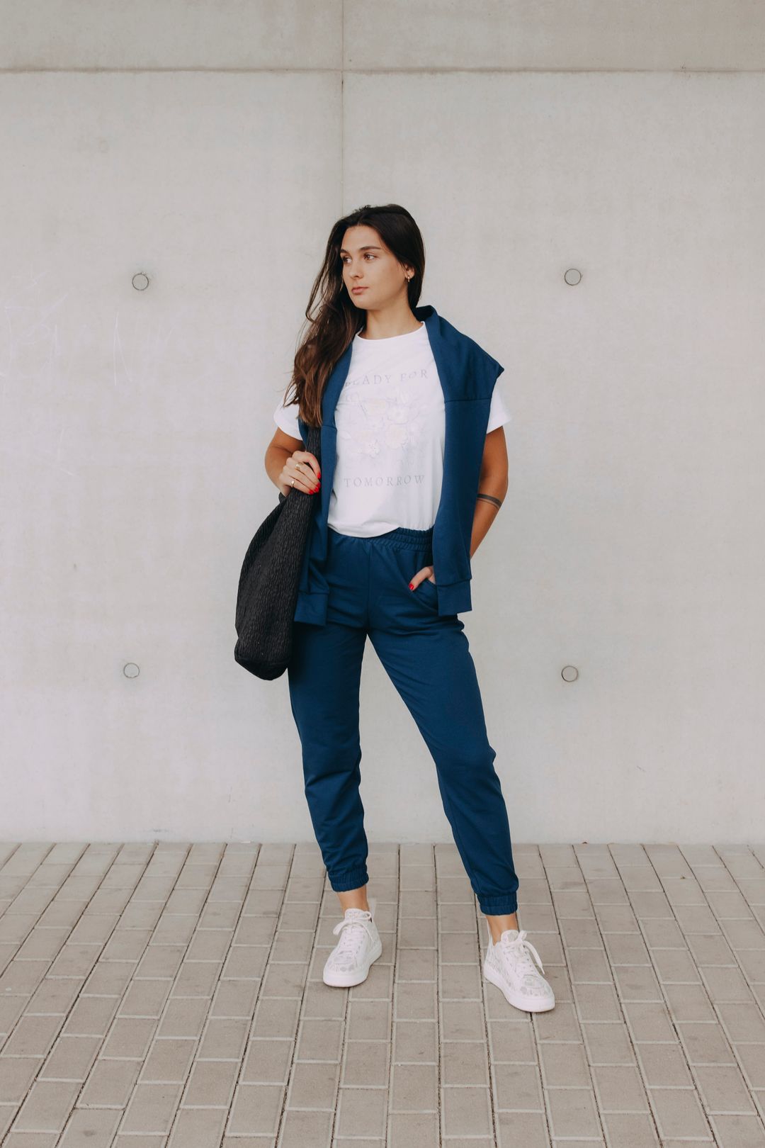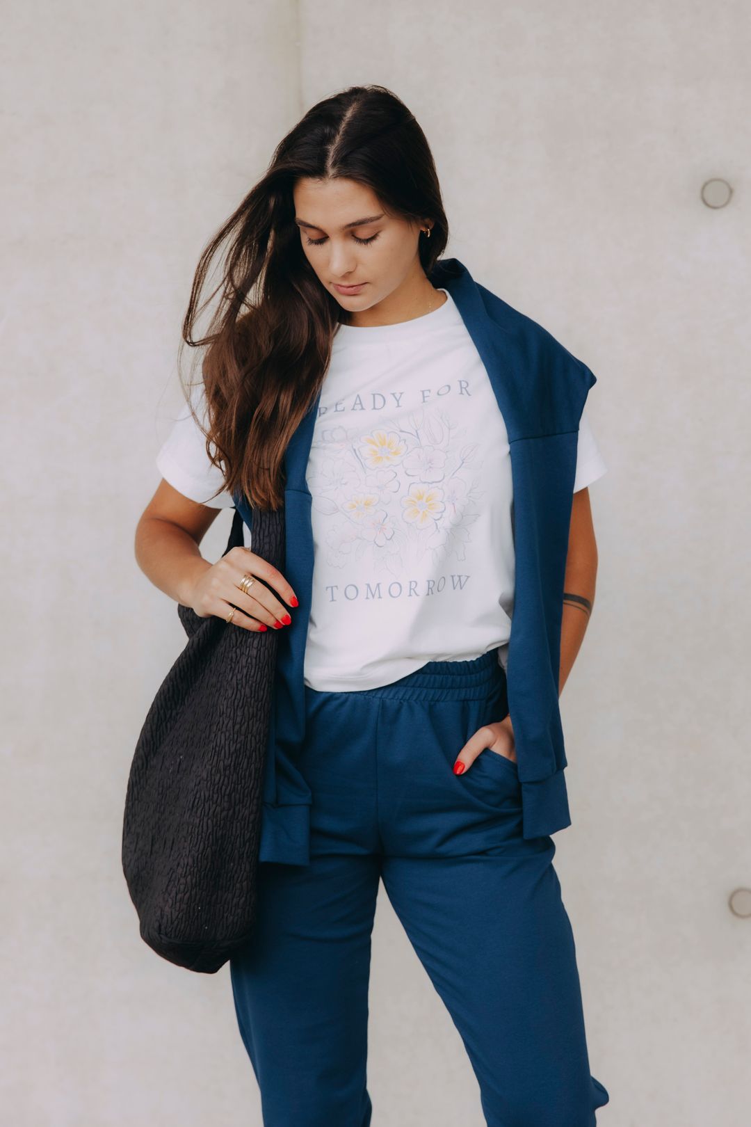 Často sú najlepšie práve tie dni, ktoré netreba nijako plánovať. Vstanete, hodíte na seba niečo pohodlné a všetko si do seba sadne – tempo, nálada, okolnosti aj outfit. Oversized tričko Ready for Tomorrow z kolekcie Mood to hovorí za vás. Je ľahké, optimistické, trochu rozcuchané ako vaše myšlienky v sobotu ráno. Mikina prehodená cez plecia a nohavice z teplákovej súpravy Hawa Summer v odtieni Poseidon zasa naznačujú, že ste pripravená na všetko, aj keď to „všetko“ bude len flat white, trh a pár krokov po meste. Jednoducho deň, ktorý patrí vám. A zajtra? To sa ešte len uvidí.