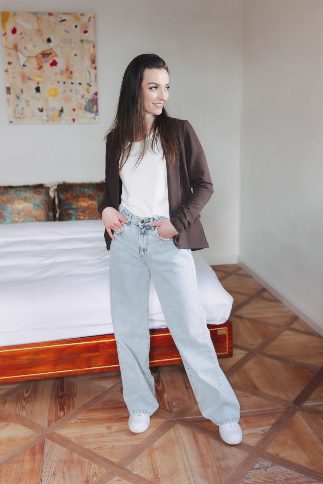 Existujú kúsky, ktoré z našej dielne jednoducho nemôžu zmiznúť, pretože ich vy, naše Bugačky, milujete. Sako Ania patrí medzi tie najobľúbenejšie stálice, ku ktorým sa vraciame zas a znova. Je to presne tá kombinácia absolútnej slobody a ležérnej elegancie, ktorá je v každodennom zhone tak návyková.
