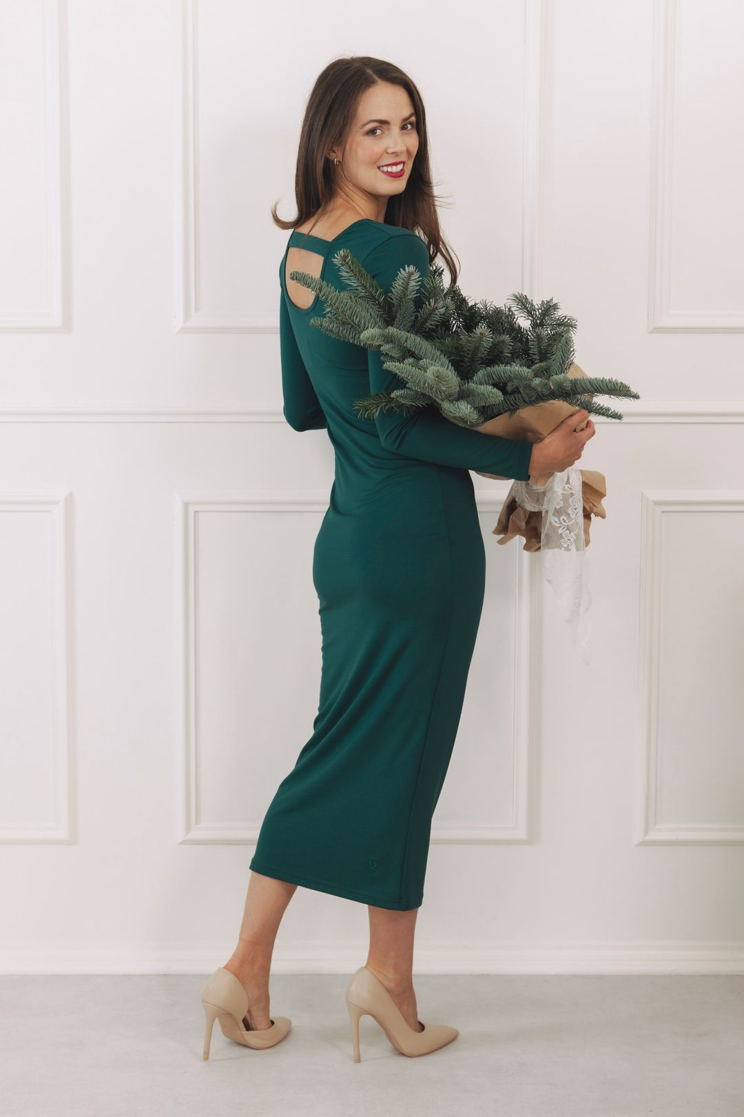 Šaty Asani s priliehavým strihom, dlhými rukávmi a dych vyrážajúcim výstrihom na chrbte vytvárajú sebavedomý look, v ktorom sa budete zároveň cítiť neuveriteľne pohodlne.