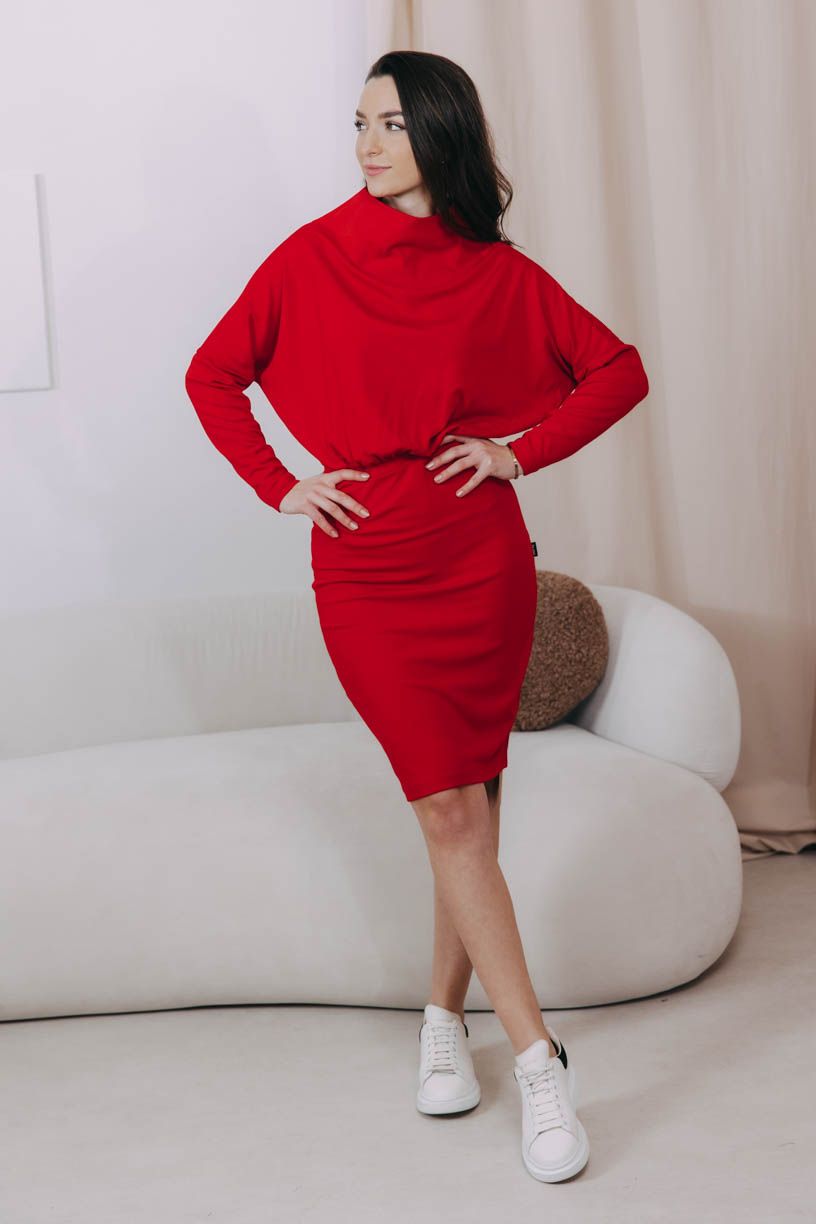 Šaty Asidi so stojačikom, netopierími rukávmi a gumou v páse dokonale padnú v každej situácii. Pohodlné a nesmierne šik.