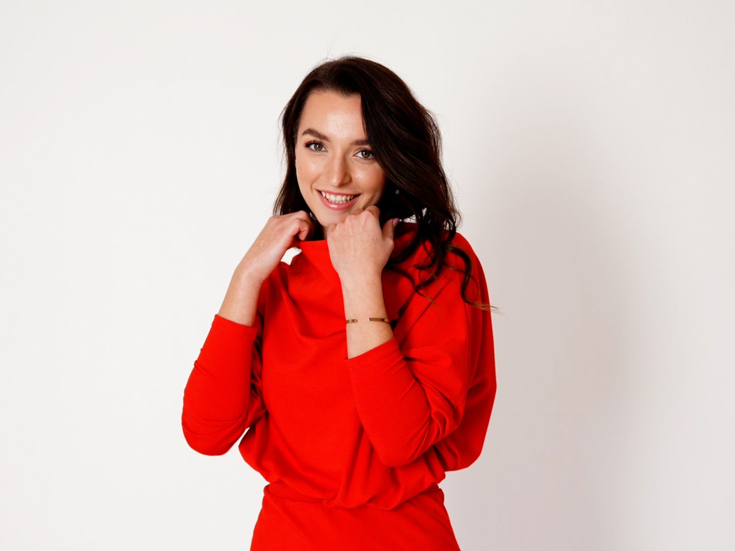 Káťa má na sebe pri svojej výške 170 cm veľkosť XS.