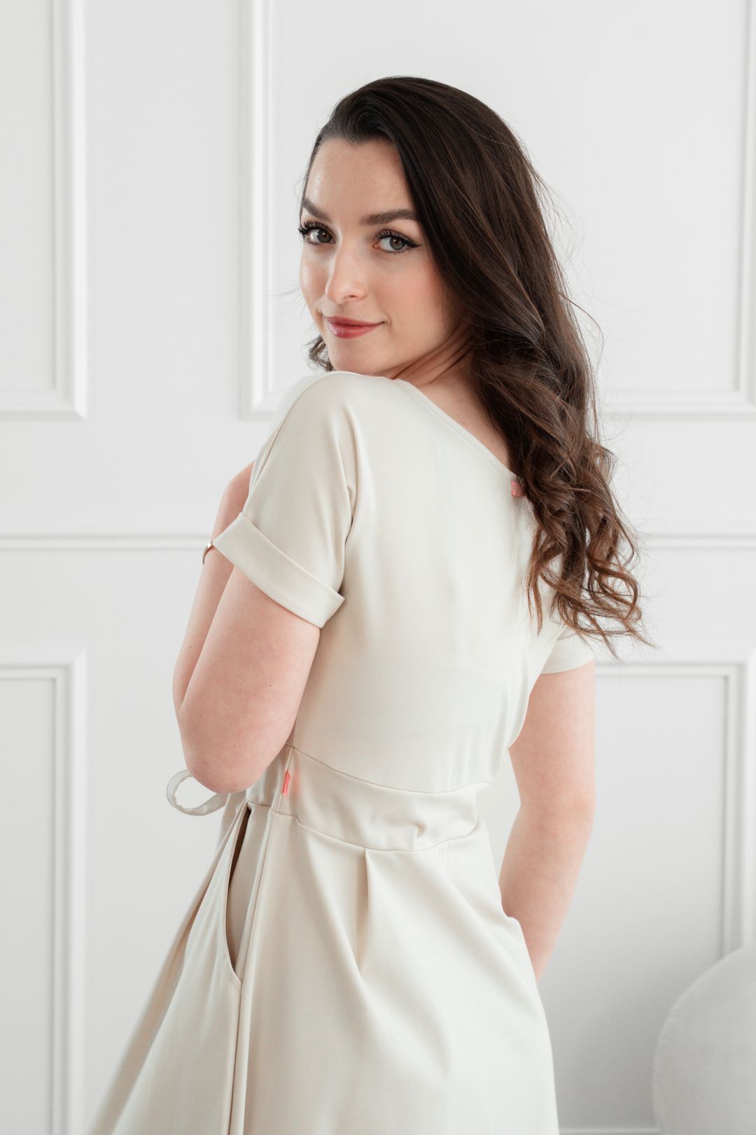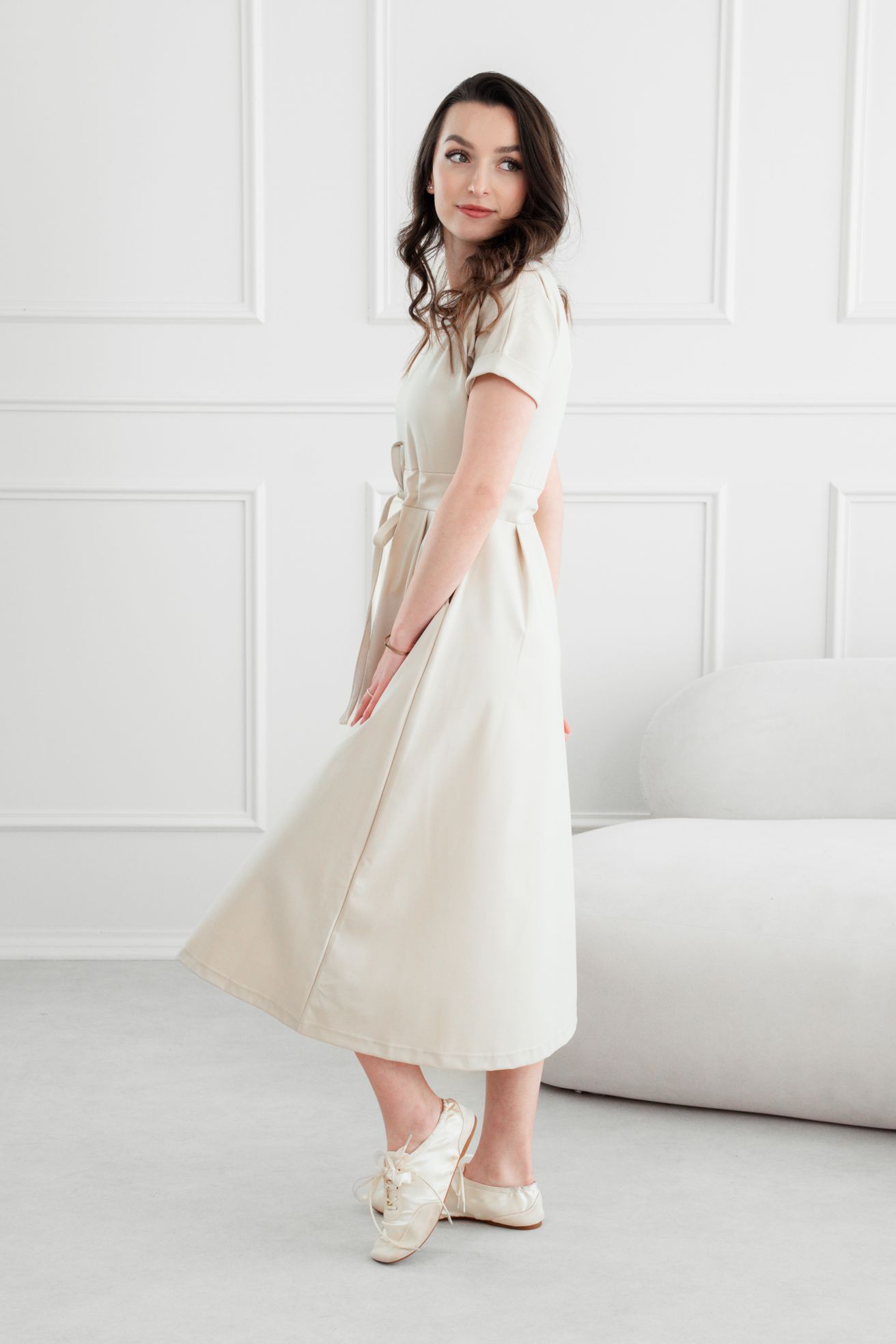 Audrey nie sú len krásne na pohľad – sú premyslené do posledného detailu. Vďaka sťahovacej šnúrke si šaty ľahko upravíte presne na svoju postavu. Rozumne riešené rukávy s mierne padnutými ramenami, lodičkový výstrih, vrecká a midi dĺžka – to všetko z nich robí sofistikované, praktické a neodolateľné šaty, ktoré vám dodajú sebavedomie.