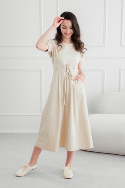 Pokiaľ váhate, odporúčame zvoliť menšiu veľkosť, než akú obvykle nosíte. Strih je pomerne voľný a sťahovacia šnúrka v páse vám pomôže šaty dokonale prispôsobiť.