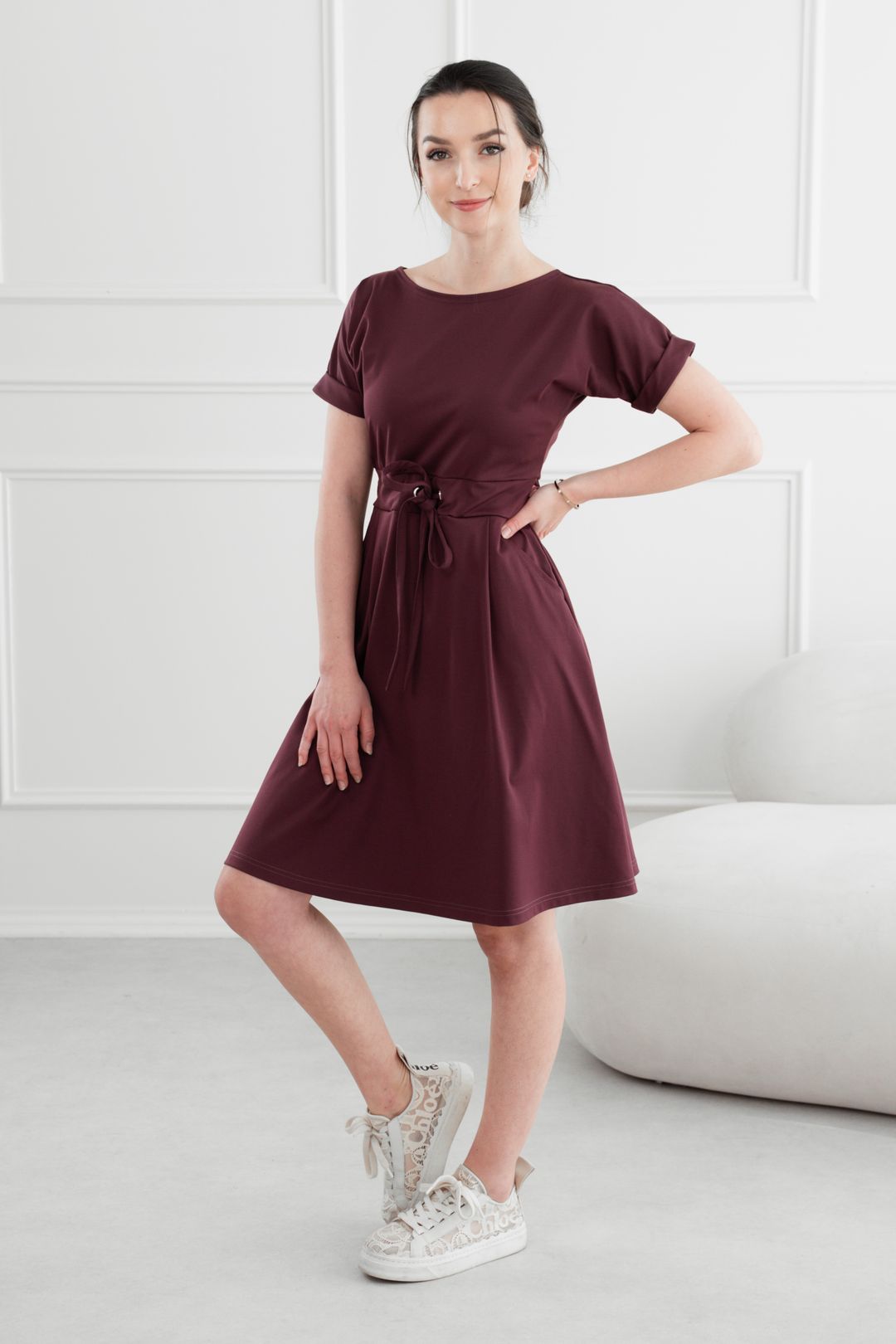 Viete, aký je to pocit, keď sa vám nechce príliš premýšľať o outfite, a pritom chcete vyzerať sakramentsky dobre? Presne pre tieto dni sú tu elegantné vínové šaty Audrey Short. Zachovávajú si všetku eleganciu svojej midi sestry, ale vďaka dĺžke po kolená pridávajú na sviežosti a hravosti. Sú ideálnou voľbou, ak hľadáte univerzálny a pritom štýlový kúsok.