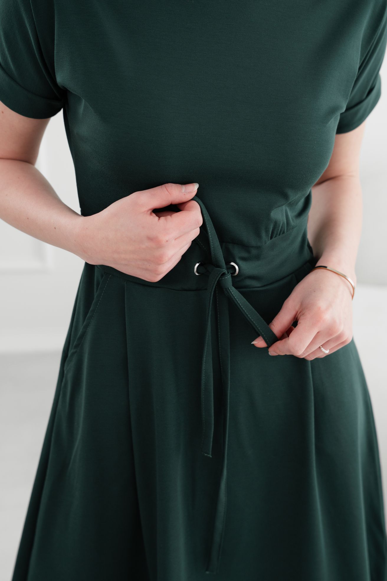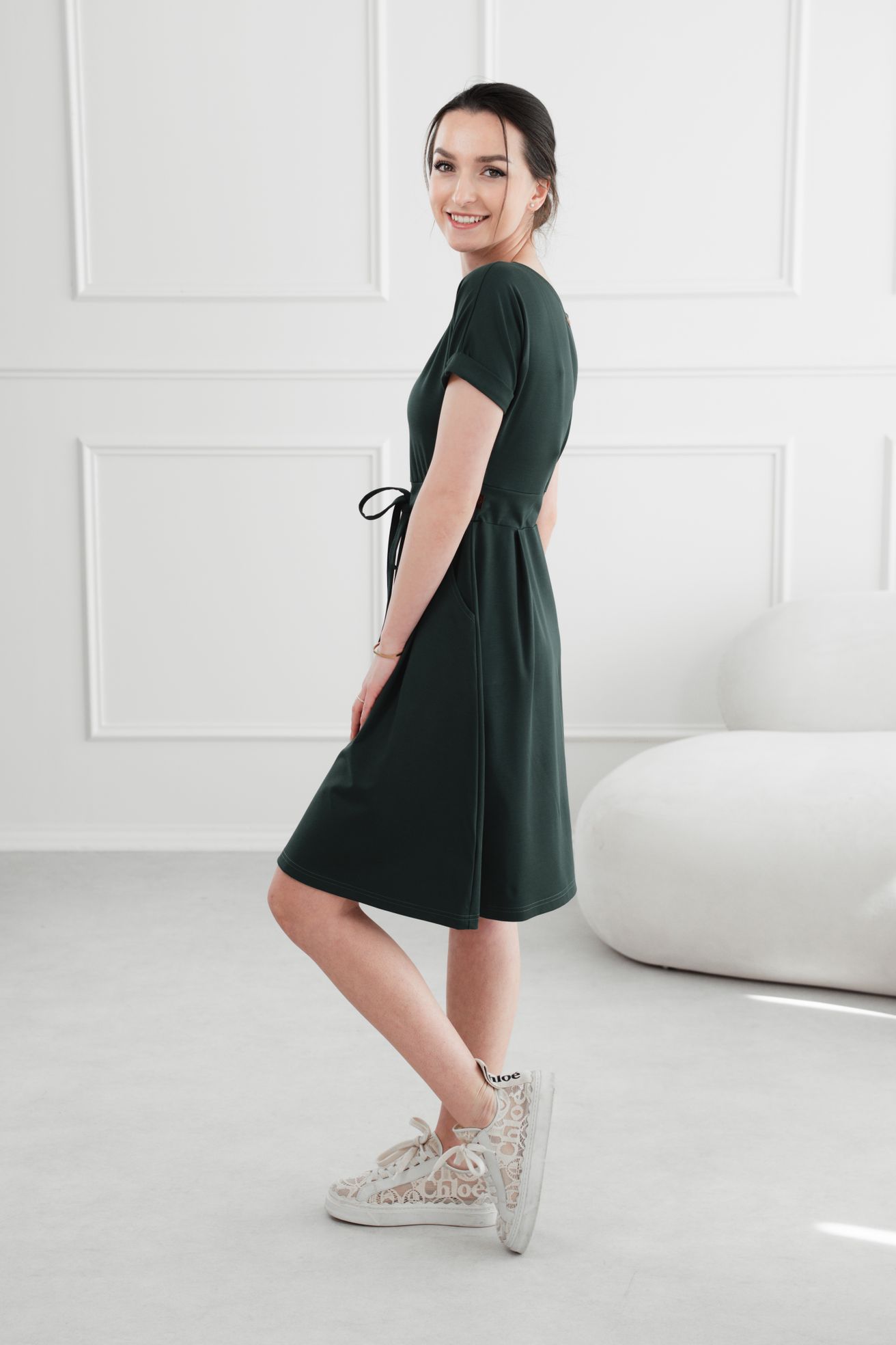 Viete, aký je to pocit, keď sa vám nechce príliš premýšľať o outfite, a pritom chcete vyzerať sakramentsky dobre? Presne pre tieto dni sú tu elegantné tmavozelené šaty Audrey Short. Zachovávajú si všetku eleganciu svojej midi sestry, ale vďaka dĺžke po kolená pridávajú na sviežosti a hravosti. Sú ideálnou voľbou, ak hľadáte univerzálny a pritom štýlový kúsok.