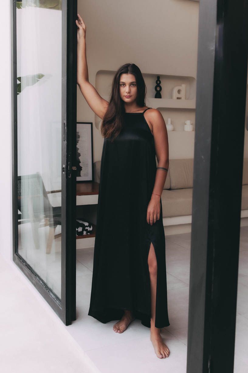 Šaty pre bohyne. Ishana sú sofistikovane variabilné – dajú sa nosiť s odhaleným chrbtom aj zaviazané okolo pása. Ľahký materiál je ideálny na letnú dovolenku.