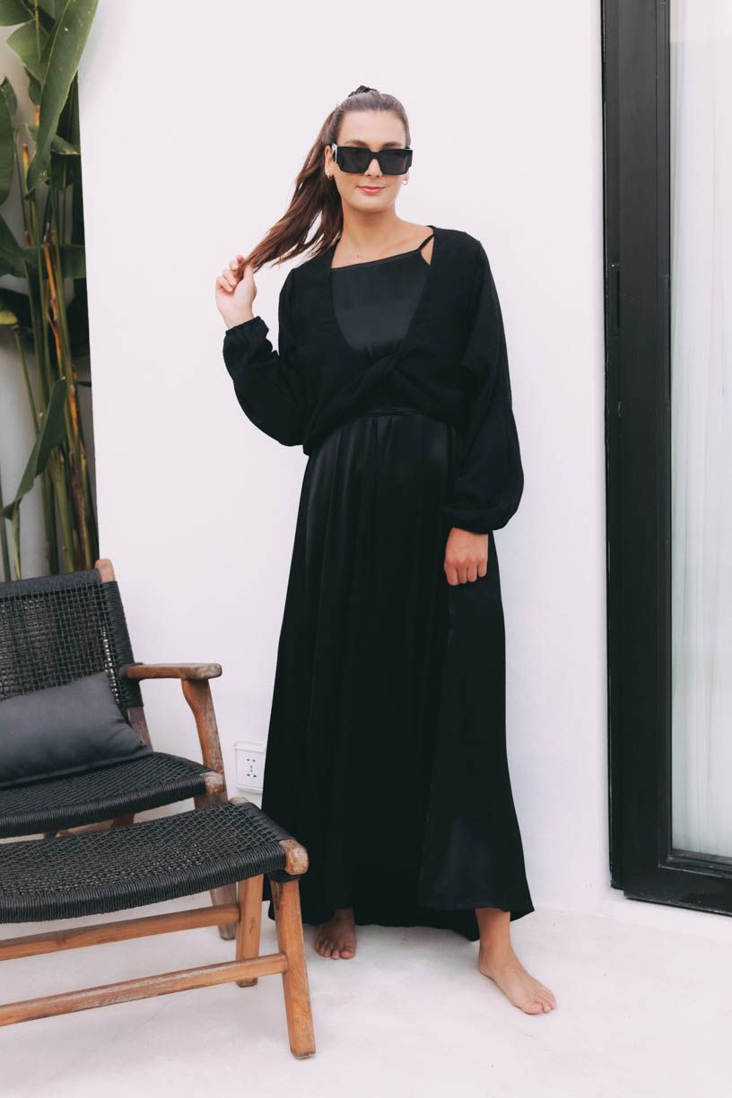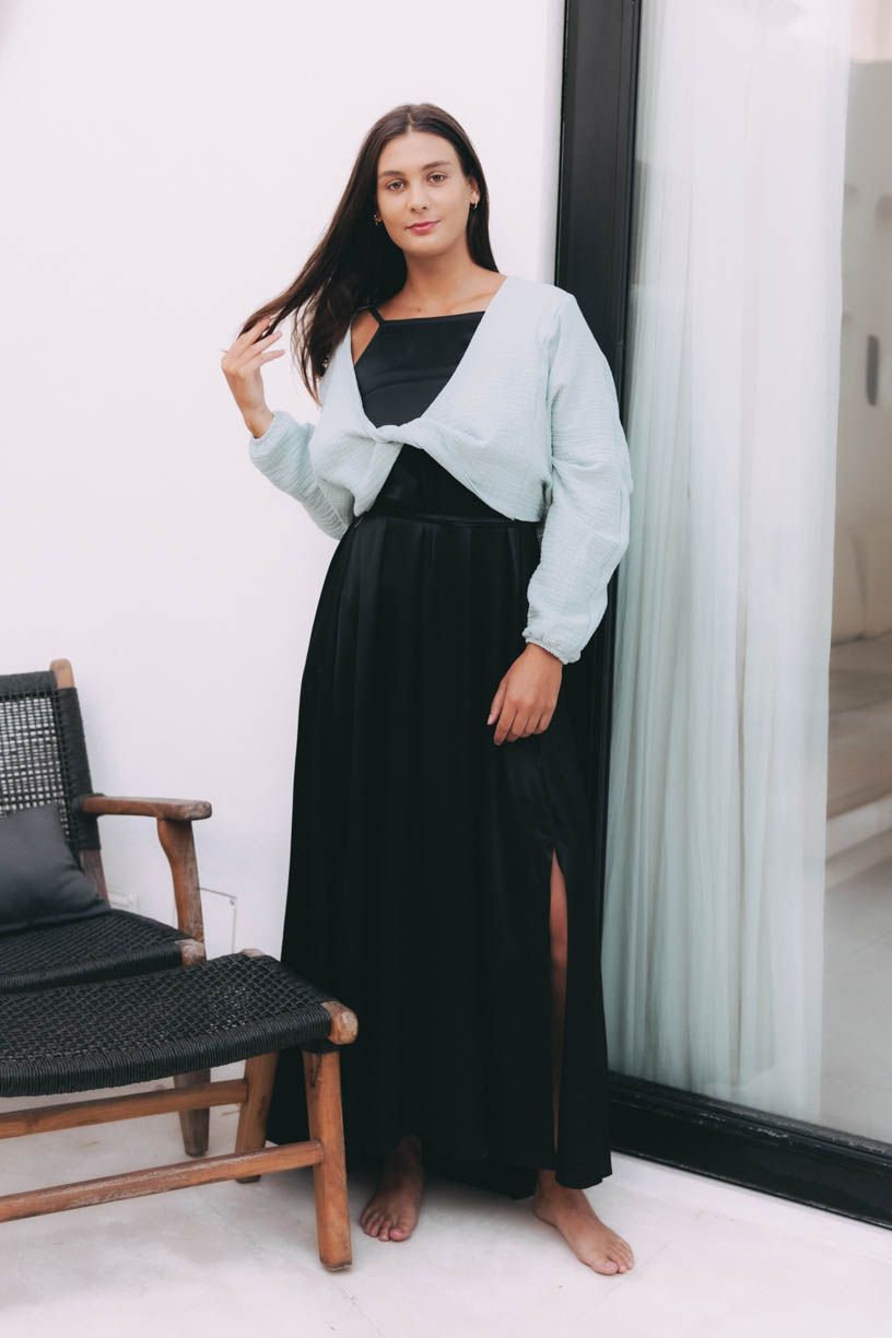 Áno, šaty Ishani sú navrhnuté tak, aby sa nosili s gráciou aj bez podprsenky. Viskóza ECOVERO je jemná, ale nepresvitá, takže sa budete cítiť pohodlne a sebavedome. Ak by ste predsa len chceli nejakú oporu, k šatám sa skvele hodí top Zuhra, ktorý poskytne podporu a zároveň vyzerá skvele.