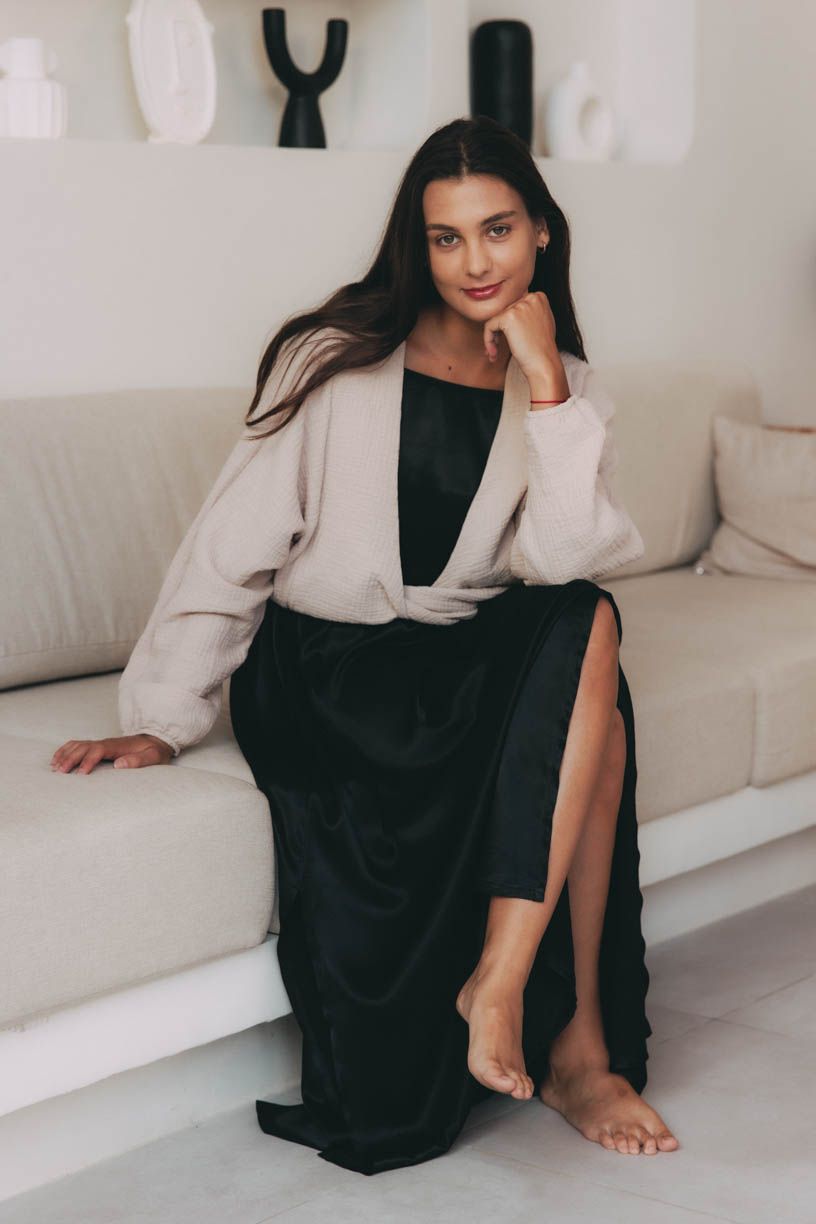 Vstúpte do leta s ľahkosťou a sebavedomím. Šaty Ishani sú ako stvorené pre ženy, ktoré chcú zažiariť na pláži, v mestských uličkách aj pri večernom stretnutí s priateľmi. Jemný splývavý materiál vás objíme, strih zdôrazní vašu siluetu a každý krok bude pôsobiť ako scéna z filmu.