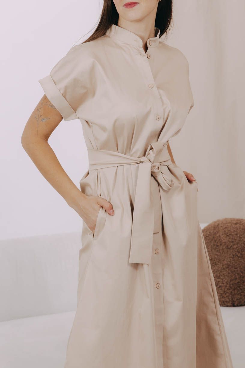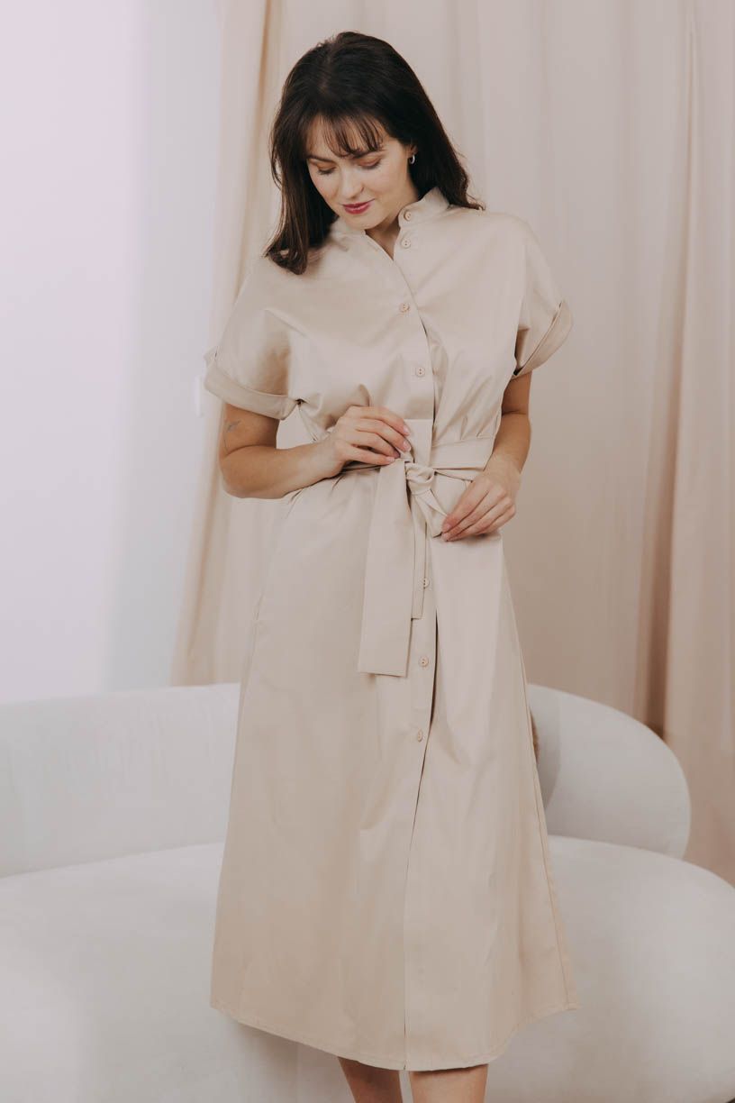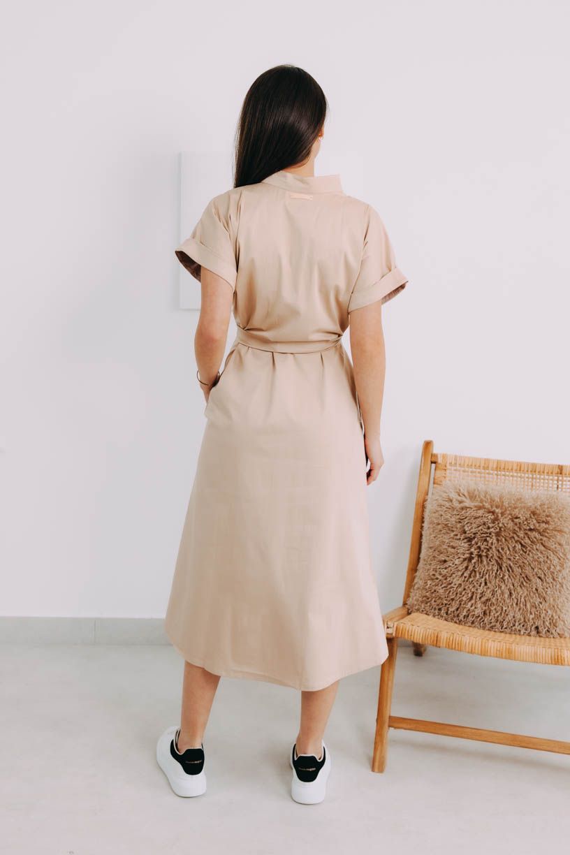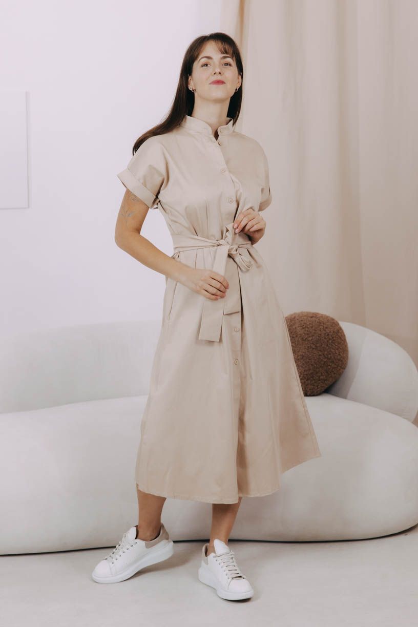 Ľahké košeľové šaty s decentným golierom, vreckami, opaskom a množstvom drobných gombíkov sú ideálne pre teplejšie dni.