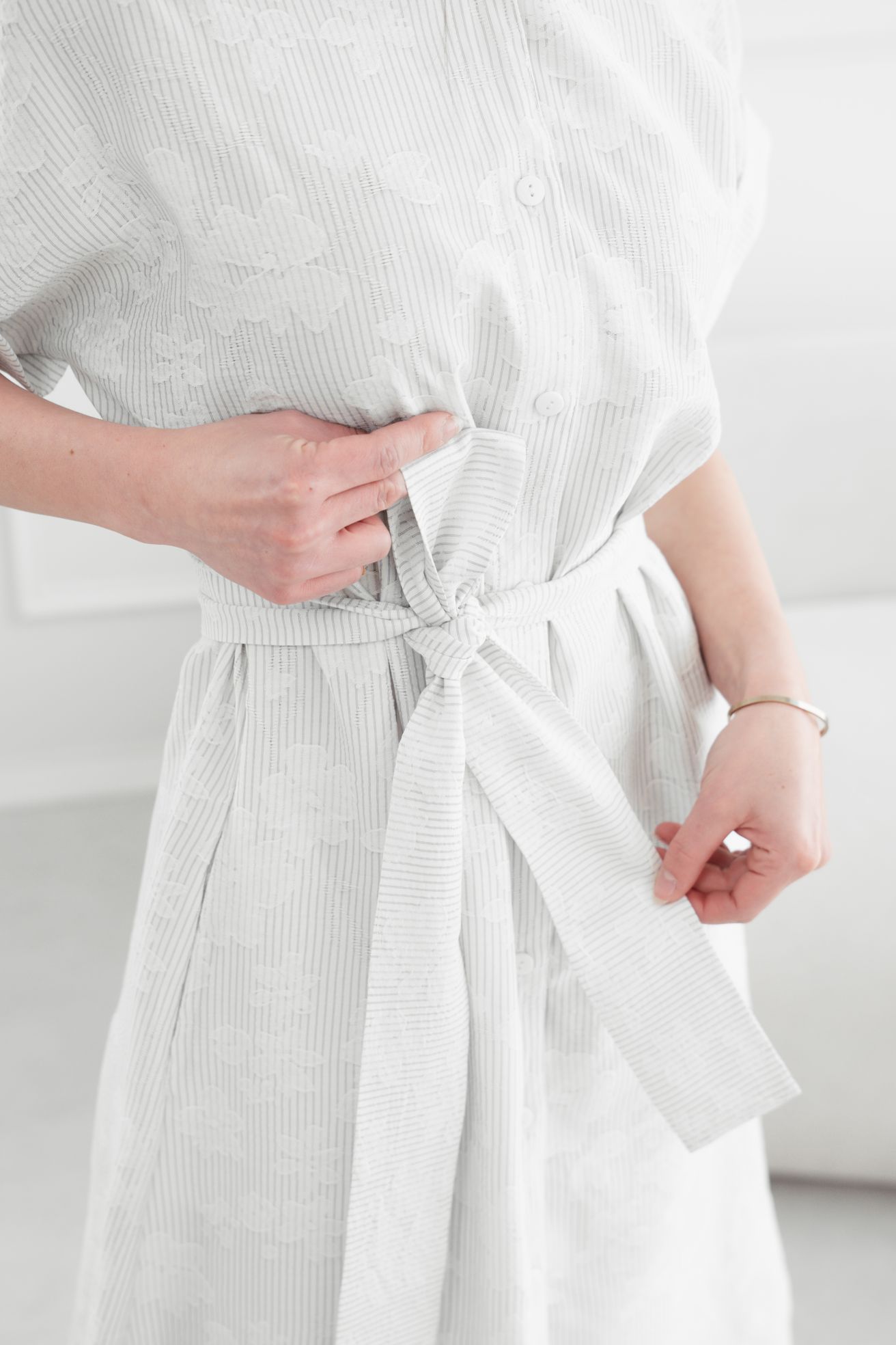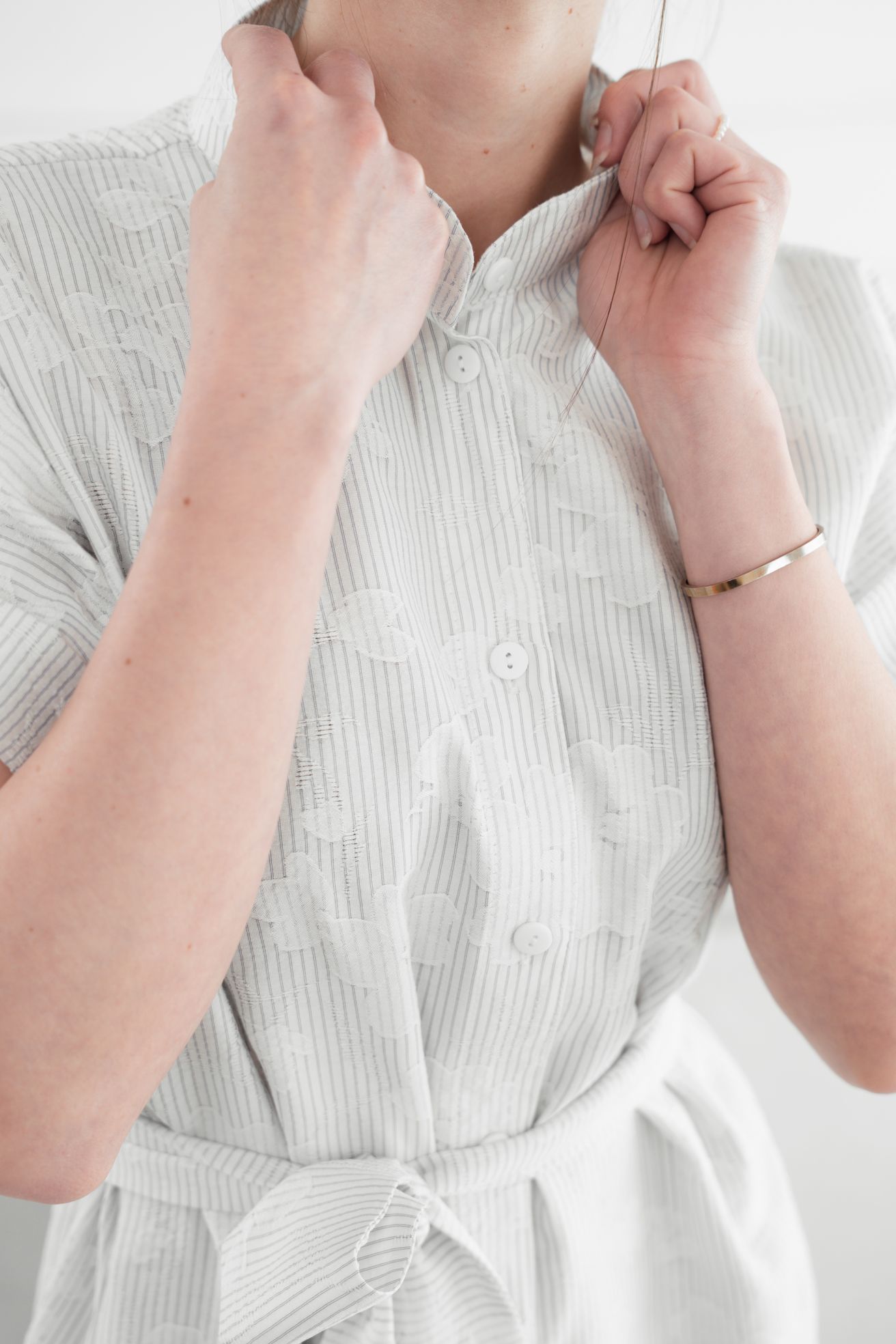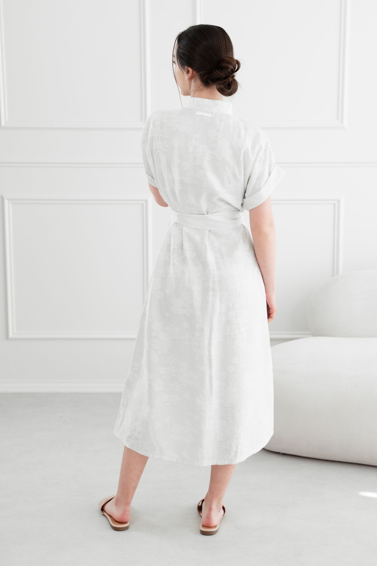 • Rukávy: Ich vyhrnuté konce dodávajú šatám jemne ležérny nádych.