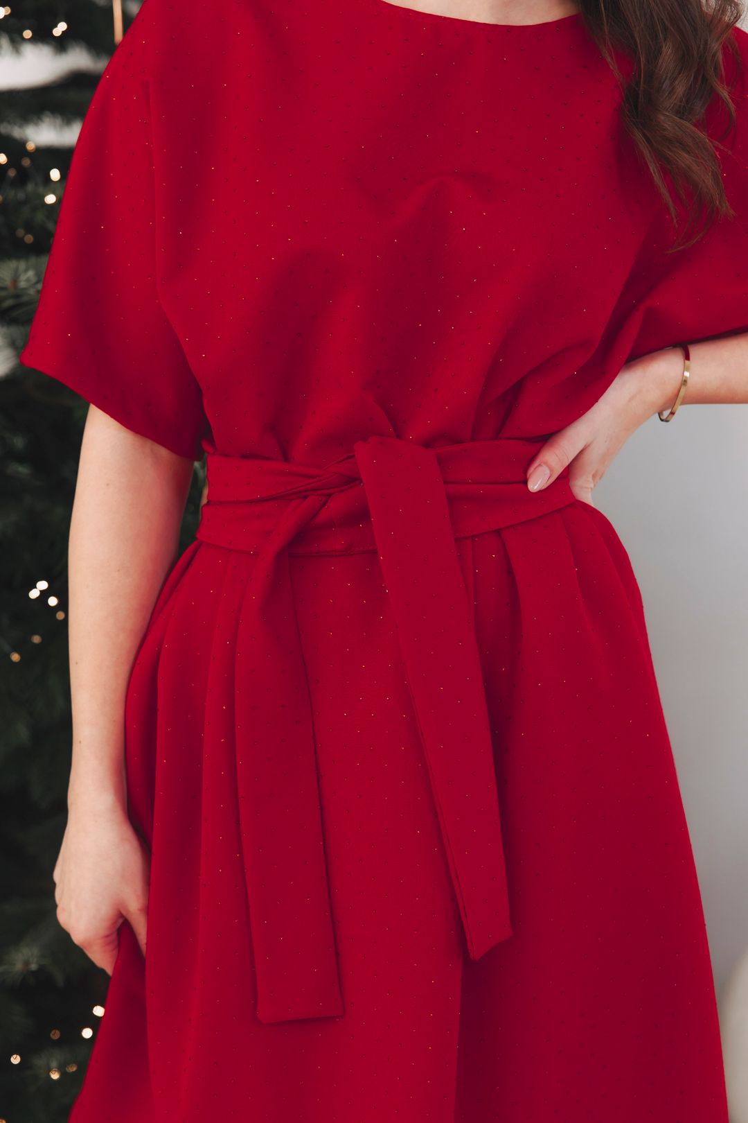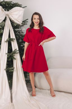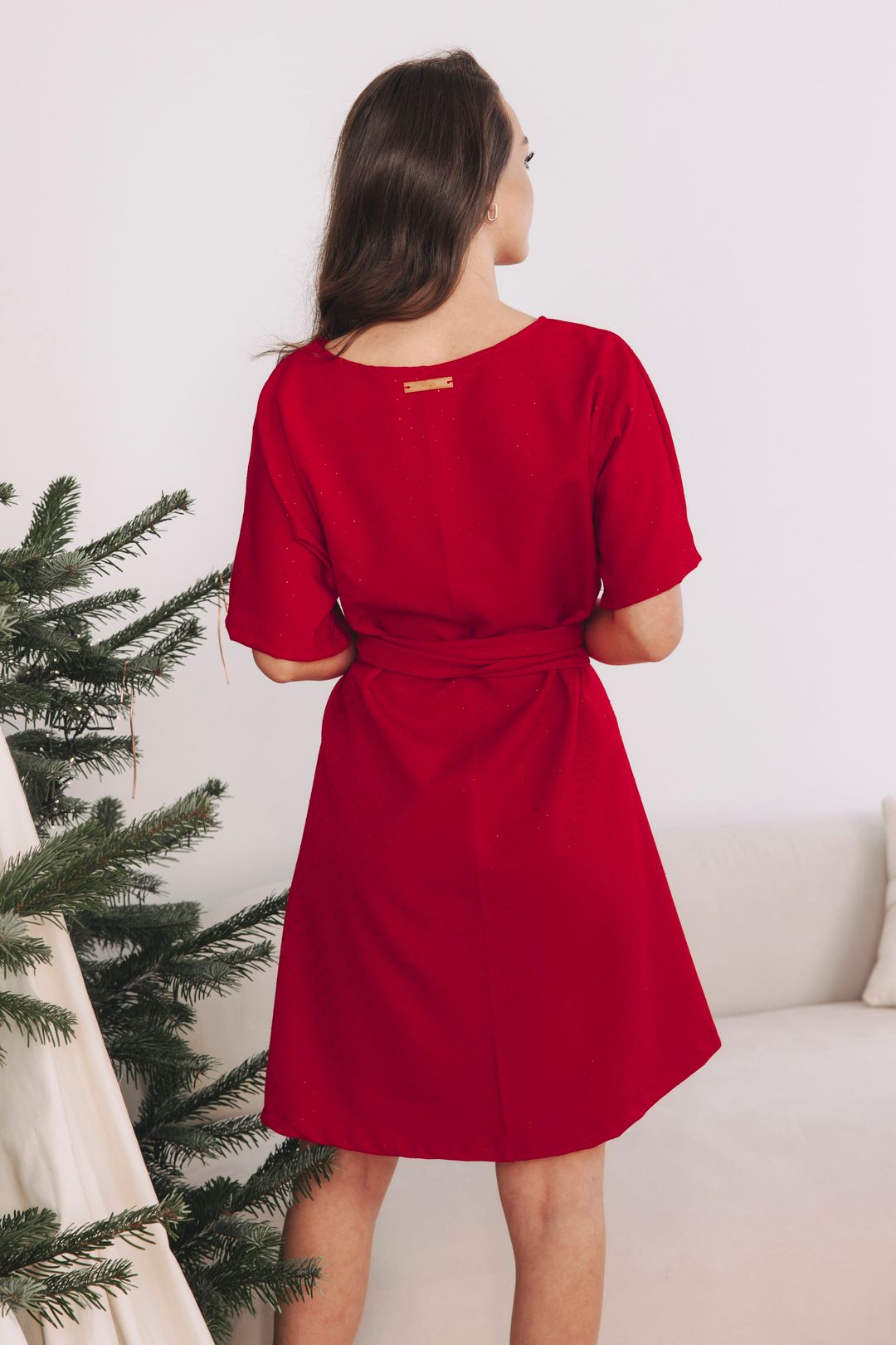 Šaty Sia spájajú jednoduchosť s eleganciou a hodia sa na večierok aj rodinnú večeru. Majú voľnejší strih, ktorý sa prispôsobí postave, a dlhú stuhu na zvýraznenie pása. Materiál s jemným leskom je pevný, nekrčivý a príjemný na nosenie. Červená farba a drobné kamienky dodávajú šatám decentný šmrnc bez zbytočného zdobenia.