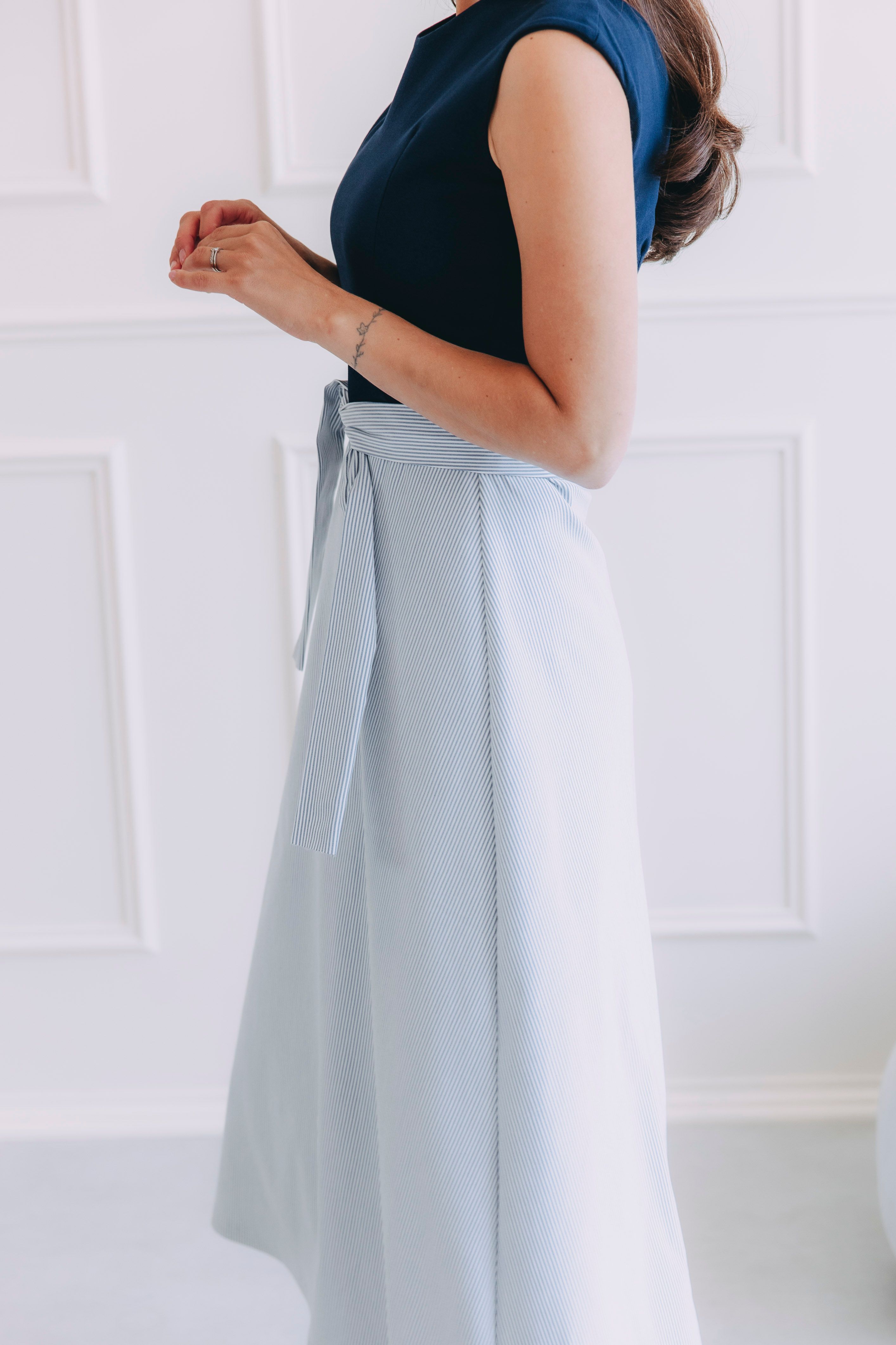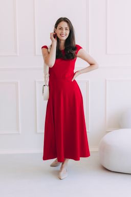 - Strih: elegantný vrchný diel pripomína puzdrové šaty s výstrihom do V a širokými ramienkami. Jemné záševky krásne tvarujú postavu. Ľahká áčková sukňa s opaskom zvýrazní pás a dodá na ženskosti.