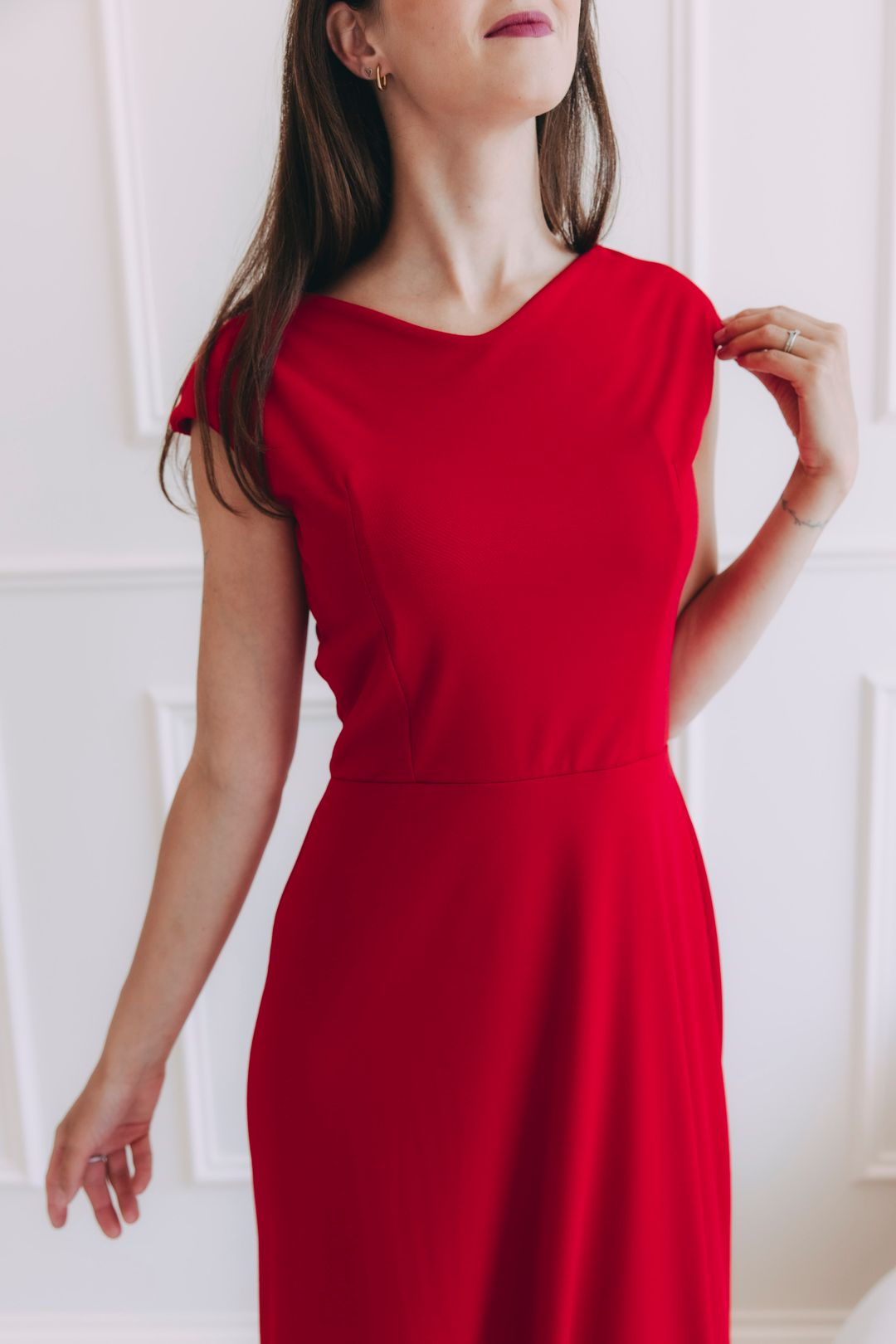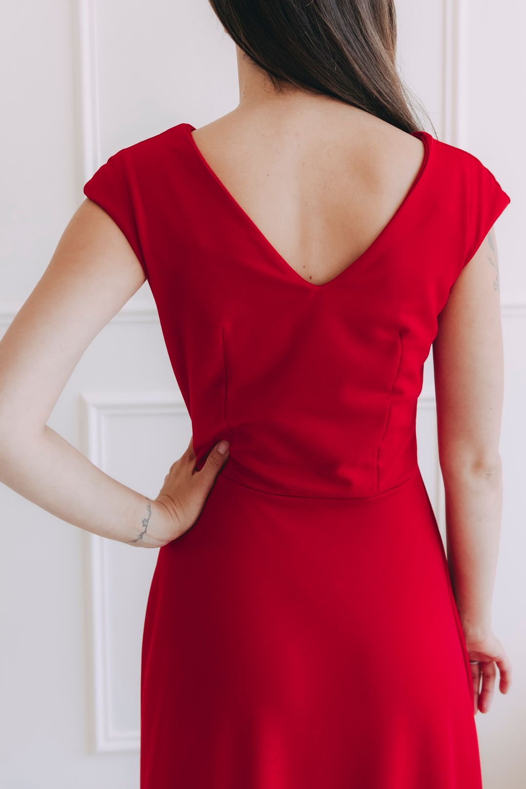 Odporúčame zamerať sa predovšetkým na obvod hrudníka, kde sú šaty ušité z dvojitej látky pre lepšiu oporu a tvar. Pružný materiál a A-strih zaistia dostatok priestoru pre pás aj boky, a tak sa šaty skvele prispôsobia každej postave. Ak váhate, napíšte nám, radi poradíme.