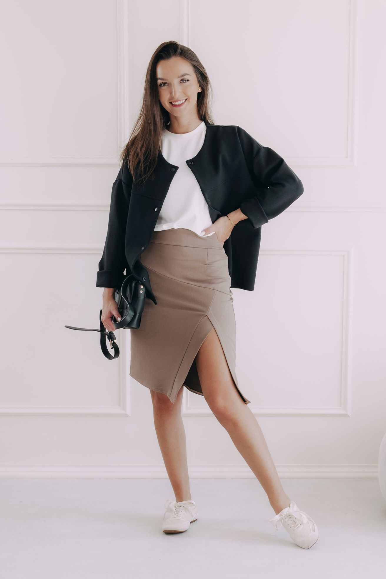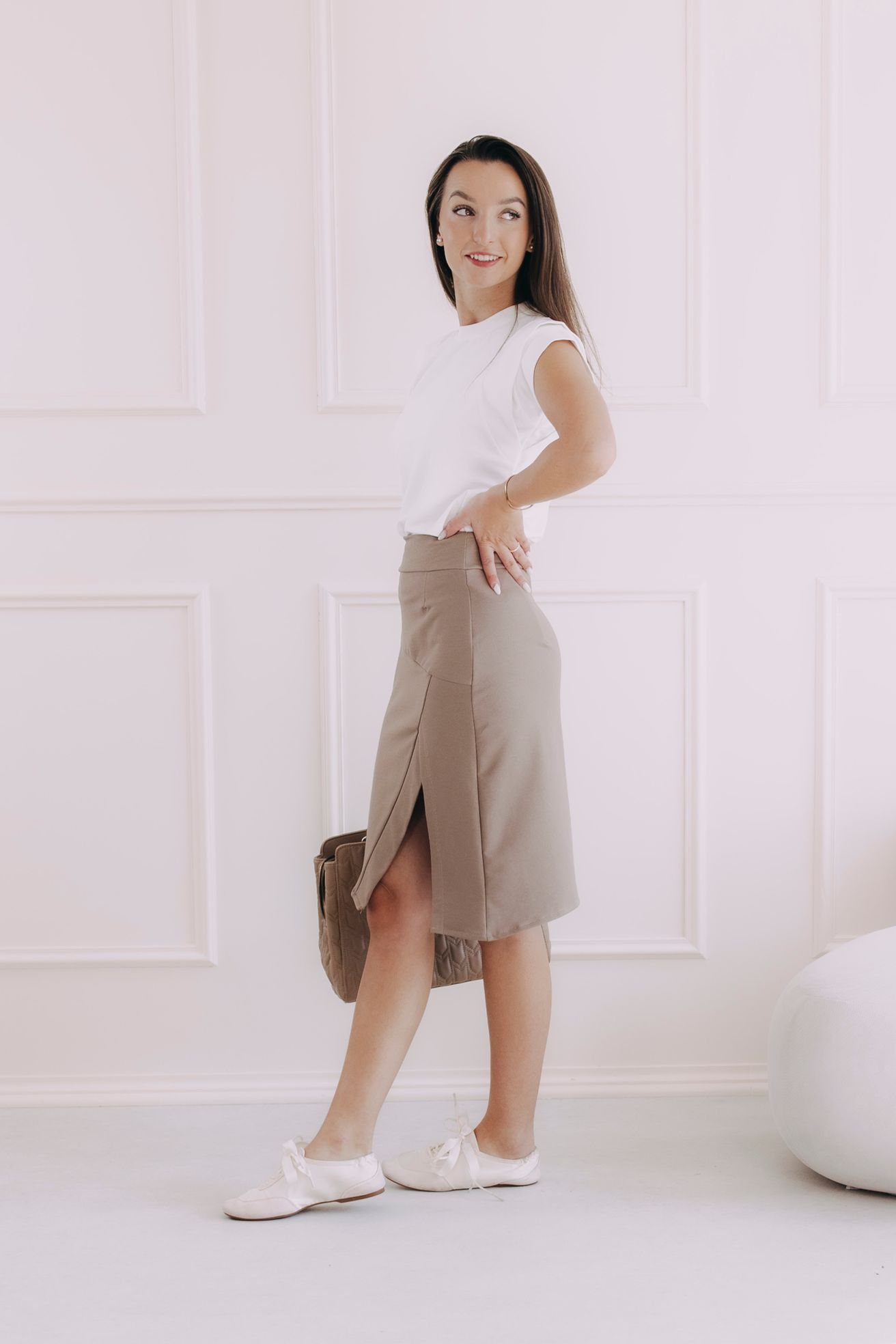 Hľadáte vhodný outfit do práce alebo na dôležité stretnutie? Sukňu Enzi Mocha môžete skombinovať s bielou košeľou, tenkým rolákom alebo jemným topom. K tomu lodičky, kabelka, decentné šperky a máte nadčasový, profesionálny look, ktorý zvýrazní vašu osobnosť a dodá istotu počas celého dňa.