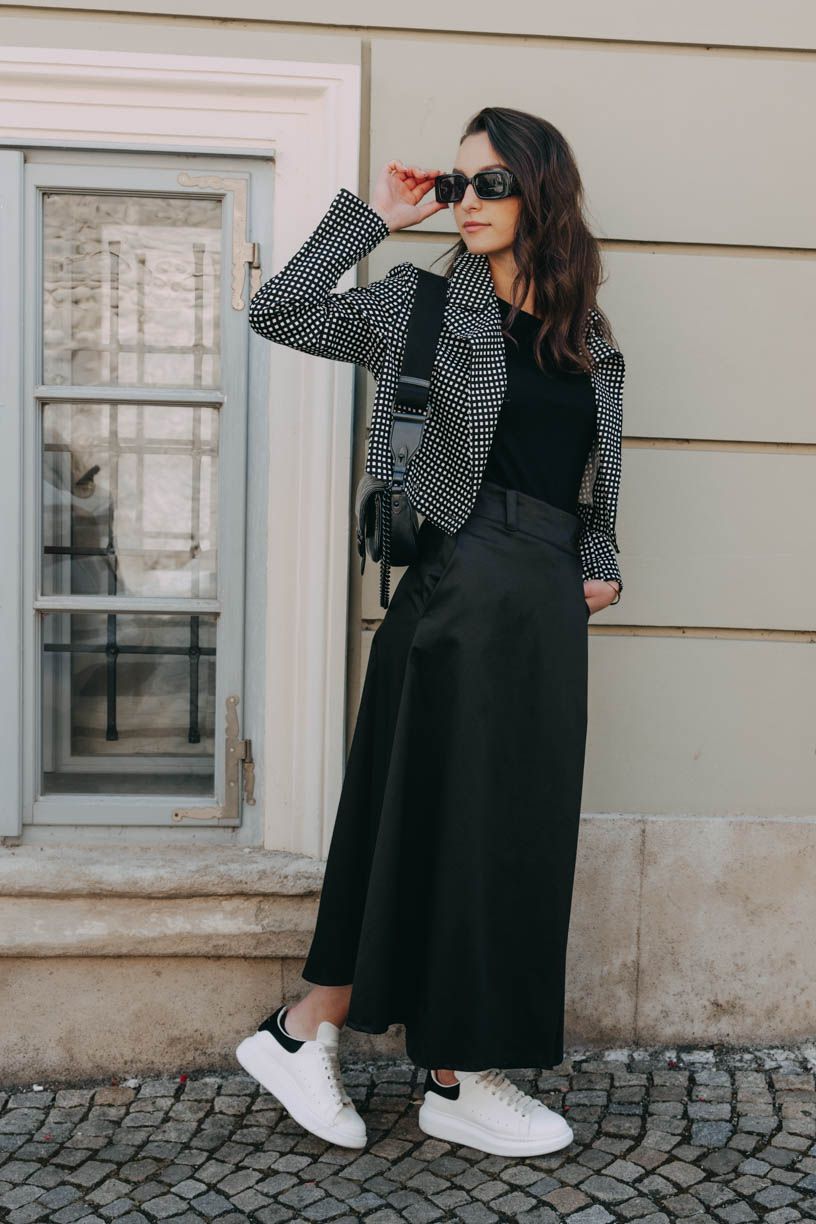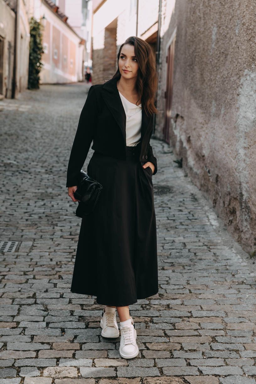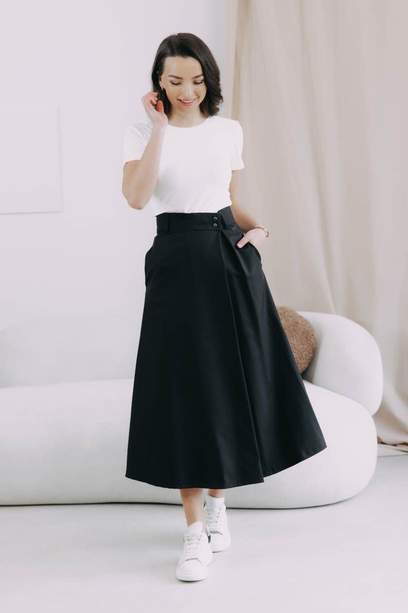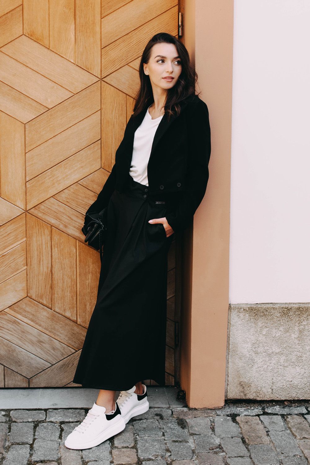 Luo sa zapína na gombíky a pridali sme jej pútka a pevný opasok. Je dlhšia a nie je tak nariasená ako napríklad sukňa Mawe. Skvele ju doplní crop top a krátke sako, ale skombinovať ju môžete napríklad s halter topom, obopnutým rolákom alebo oversized svetrom. Elegancia bude hrať prím v každom outfite, ktorý so zavinovačkou Luo poskladáte.