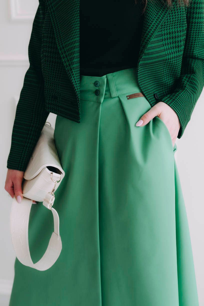 Luo sa zapína na gombíky, ktoré spolu s našitým labelom Buga tvoria aj zaujímavý farebný detail. Pridali sme jej pútka a pevný opasok. Je dlhšia a nie je tak nariasená ako napríklad sukňa Mawe. Skvele ju doplní crop top a krátke sačko, ale skombinovať ju môžete napríklad s halter topom, obopnutým rolákom alebo oversized svetrom. Elegancia bude hrať prím v každom outfite, ktorý so zavinovačkou Luo poskladáte.