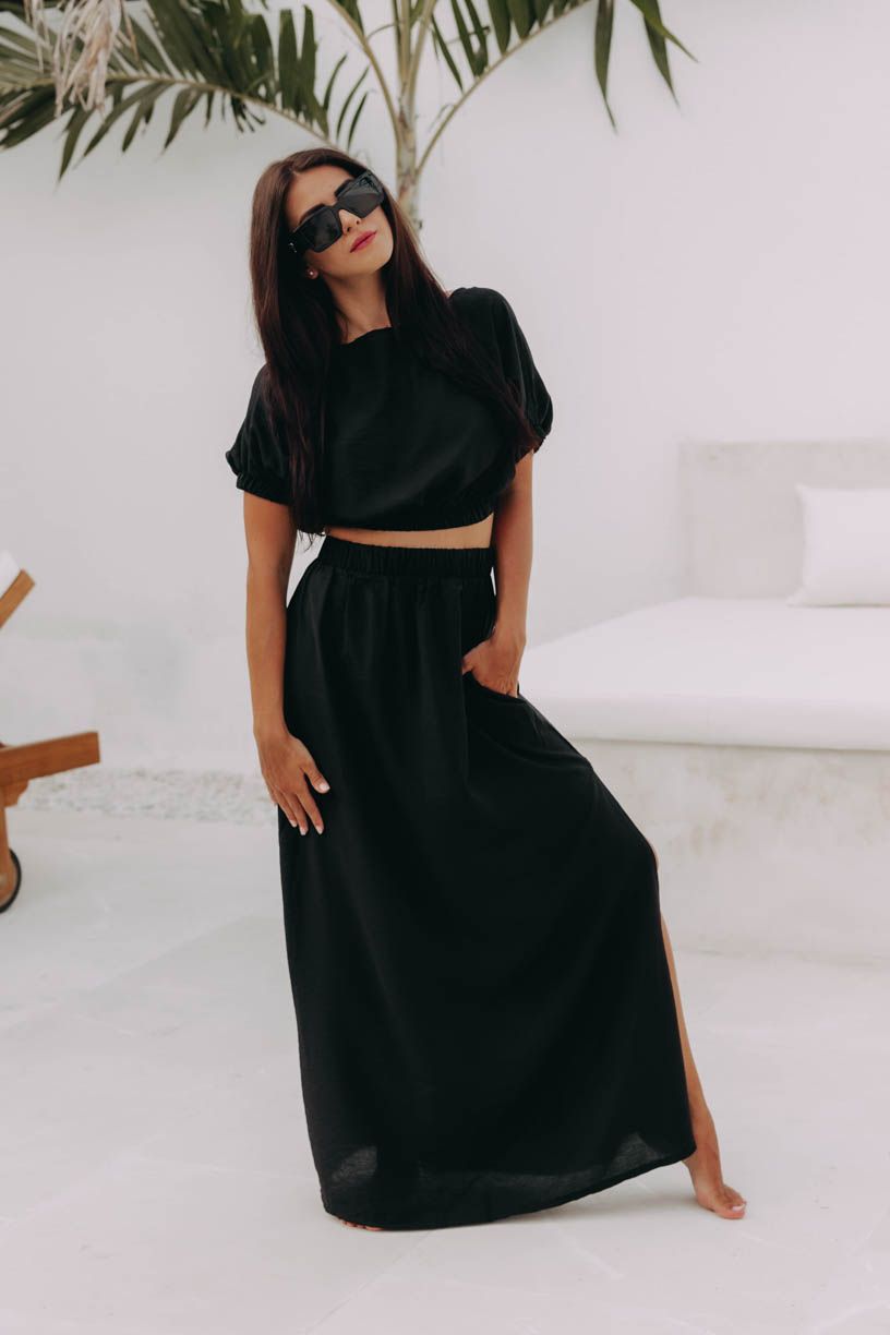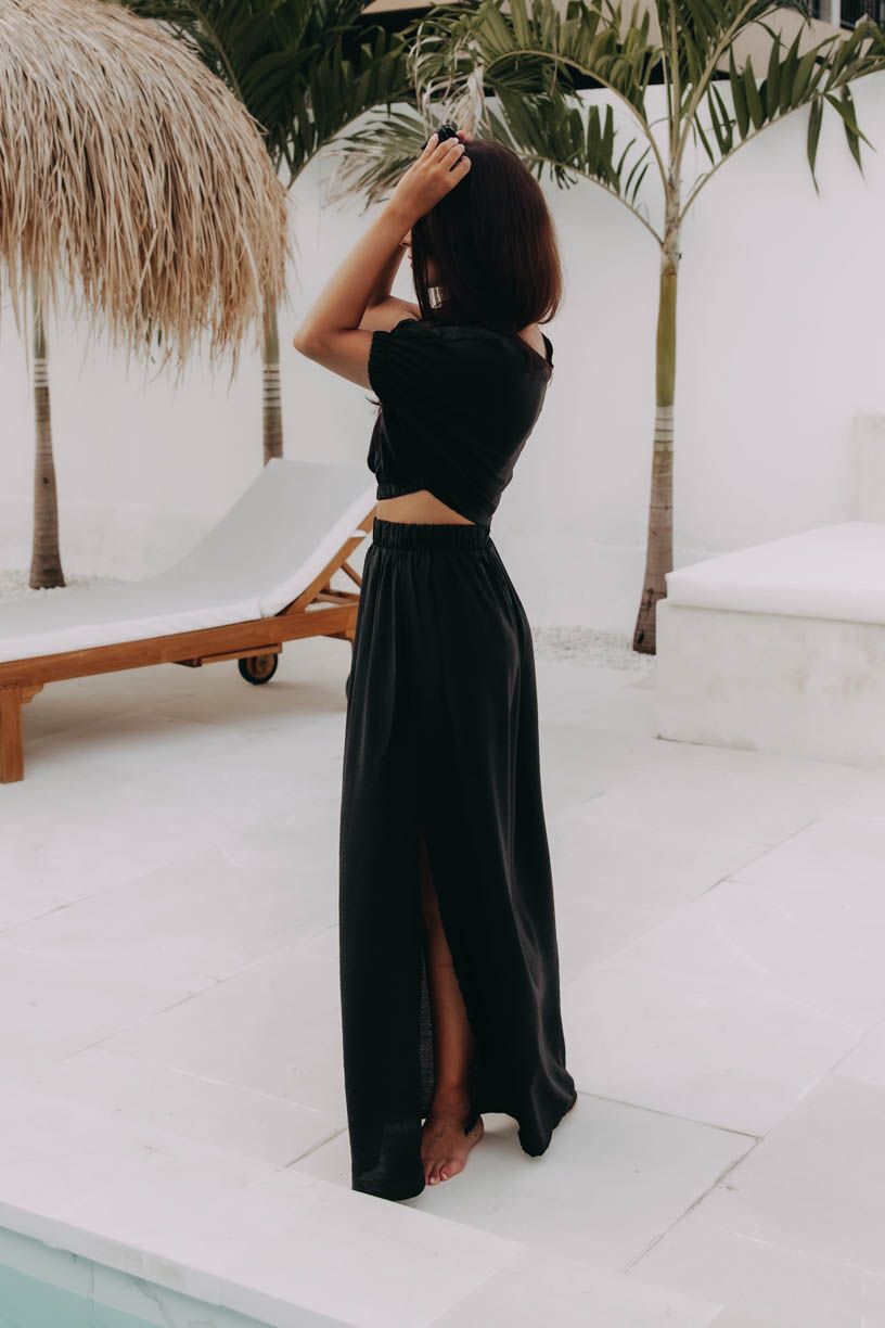 Minimalistická farba vám dovolí kombinácie s kdečím (skúste napríklad rovnako dokonalý top Geeti). Tak sa toho nebojte a vykročte v ústrety slnečným dobrodružstvám v tejto úchvatnej maxi sukni z Bali kolekcie.