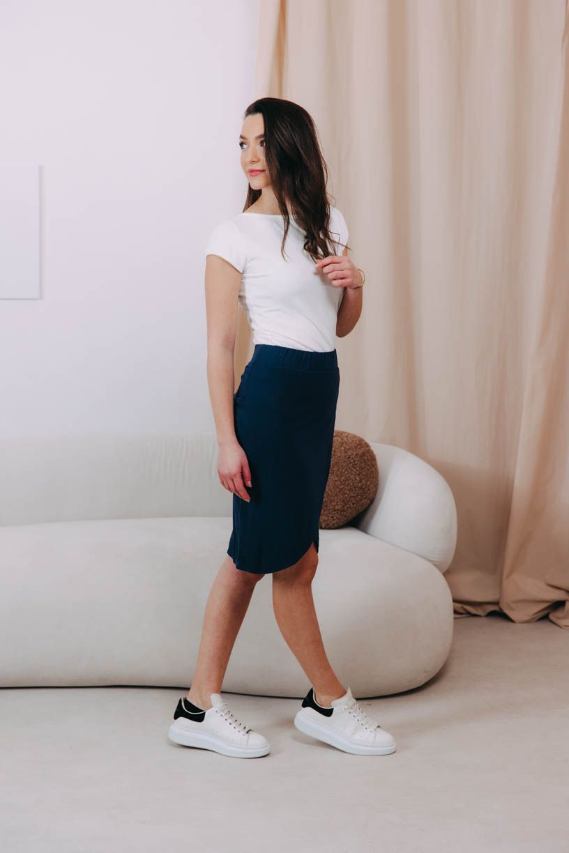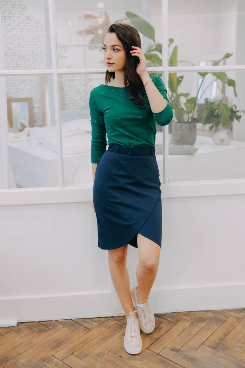 „Dva predné diely preložené, ale zavinovačka to není milý pane,“ povedala by vo svojej hádanke Popoluška, keby rozprávala o sukni Mali. Síce sa tak tvári, ale nenechajte sa oklamať prvým pohľadom. Absolútna pravda je však jej pohodlie, o ktorej sa stará pevnejší materiál zo zmesi viskózy, nylonu a trošky spandexu. Nekrčí sa, nežmolkuje a príjemne kopíruje krivky postavy. Zastrčte si do nej košeľu, top či tričko a vďaka gume v páse všetko drží na svojom mieste a nikde netlačí. (Ne)zavinovačka Mali si rozumie s podpätkami aj ležérnejšími topánkami. Už sa tešíte na kombinovanie?