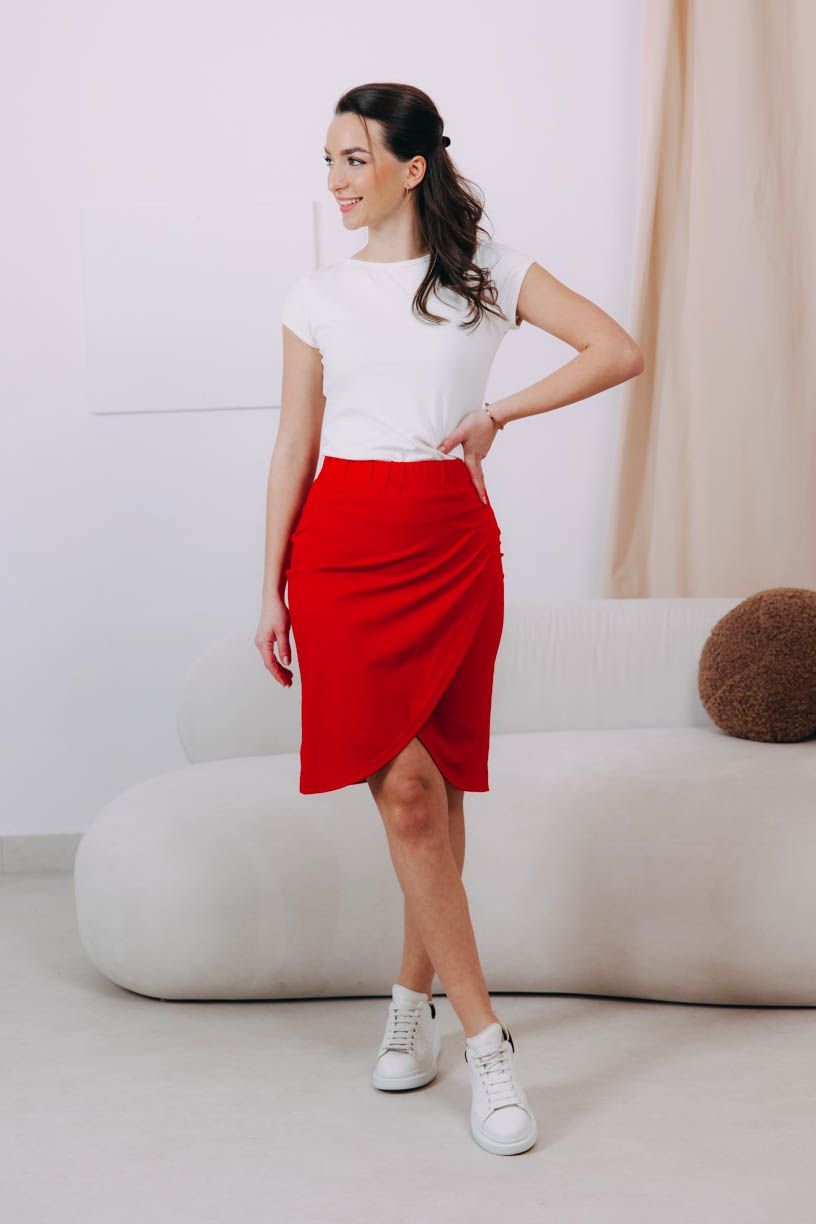 Nekrčí sa, nežmolkuje a príjemne kopíruje krivky postavy. Zastrčte si do nej košeľu, top či tričko a vďaka gume v páse všetko drží na svojom mieste a nikde netlačí. (Ne)zavinovačka Mali si rozumie s podpätkami aj ležérnejšími topánkami. Už sa tešíte na kombinovanie?