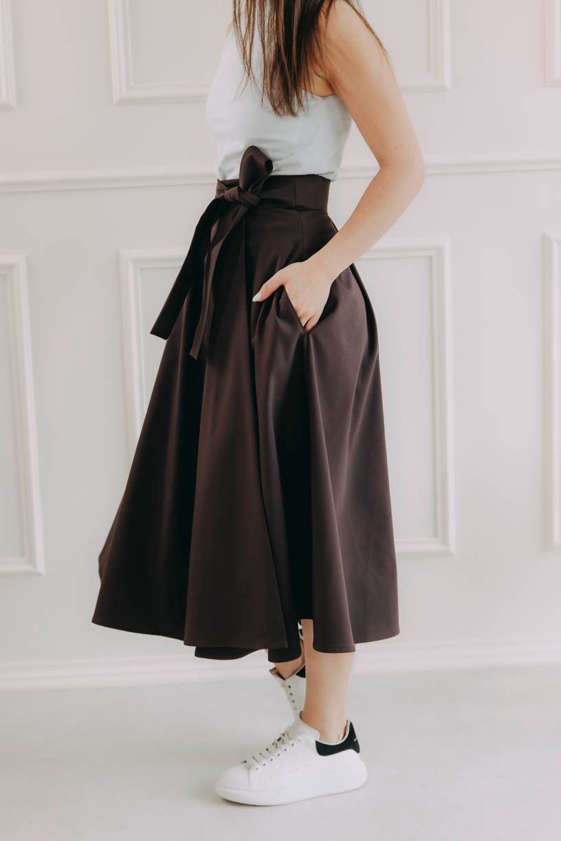 Fantázii sa medze nekladú. Mawe sa ľahko kombinuje s tým, čo už máte v šatníku. V lete ju skombinujte s crop topom, elegantnou košeľou alebo s body. Keď sa ochladí, nebojte sa ju vrstviť - skvele vyzerá s pančuškami, rolákom a koženou bundou. Stuha v páse je dokonalým detailom na uviazanie mašle, ktorá celý outfit posunie na vyššiu úroveň.