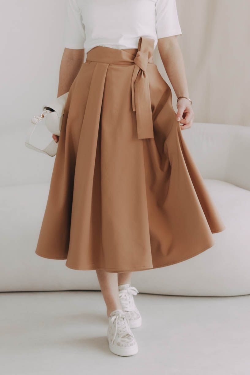 Fantázii sa medze nekladú. Mawe sa ľahko kombinuje s tým, čo už máte v šatníku. V lete ju skombinujte s crop topom, elegantnou košeľou alebo s body. Keď sa ochladí, nebojte sa ju vrstviť - skvele vyzerá s pančuškami, rolákom a koženou bundou. Stuha v páse je dokonalým detailom na uviazanie mašle, ktorá celý outfit posunie na vyššiu úroveň.