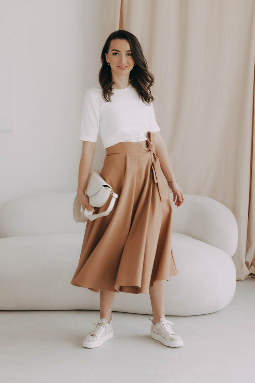 Mawe je múdra spojka medzi pohodlím a štýlom. Vďaka zavinovaciemu strihu sa dokonale prispôsobí vašej postave, mašľa v páse dodá ženský akcent a kvalitný materiál zaistí, že vám vydrží roky. Udržateľná móda? To spĺňa na jednotku. Sukňa pre každú postavu? Rozhodne. Vie zdôrazniť prednosti a šikovne zakryť, čo je potrebné. Jednoducho, obľúbená sukňa po celý rok.