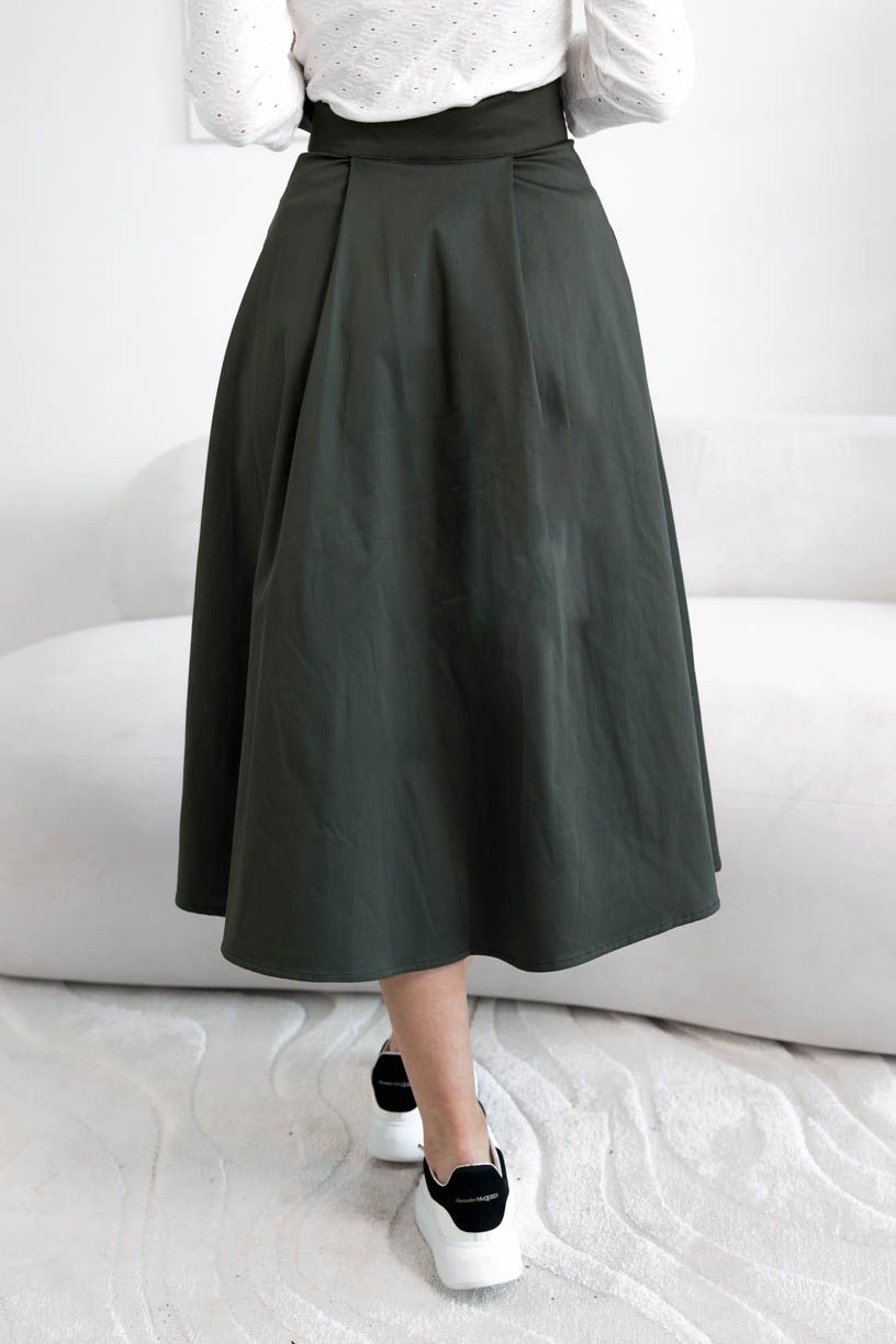Sukňa sa zapína pomocou štyroch gombíkov a dvoch dierok, čo umožňuje nastavenie pásu presne na mieru a zaisťuje, že krásne drží tam, kde má. Mašľa v páse nie je len na ozdobu, ale slúži aj ako praktická poistka pre maximálne pohodlie a sebavedomie.