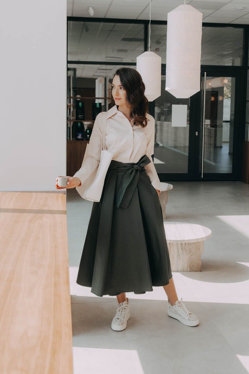 Mawe je múdra spojka medzi pohodlím a štýlom. Vďaka zavinovaciemu strihu sa dokonale prispôsobí vašej postave, mašľa v páse dodá ženský akcent a kvalitný materiál zaistí, že vám vydrží roky. Udržateľná móda? To spĺňa na jednotku. Sukňa pre každú postavu? Rozhodne. Vie zdôrazniť prednosti a šikovne zakryť, čo je potrebné. Jednoducho, obľúbená sukňa po celý rok.
