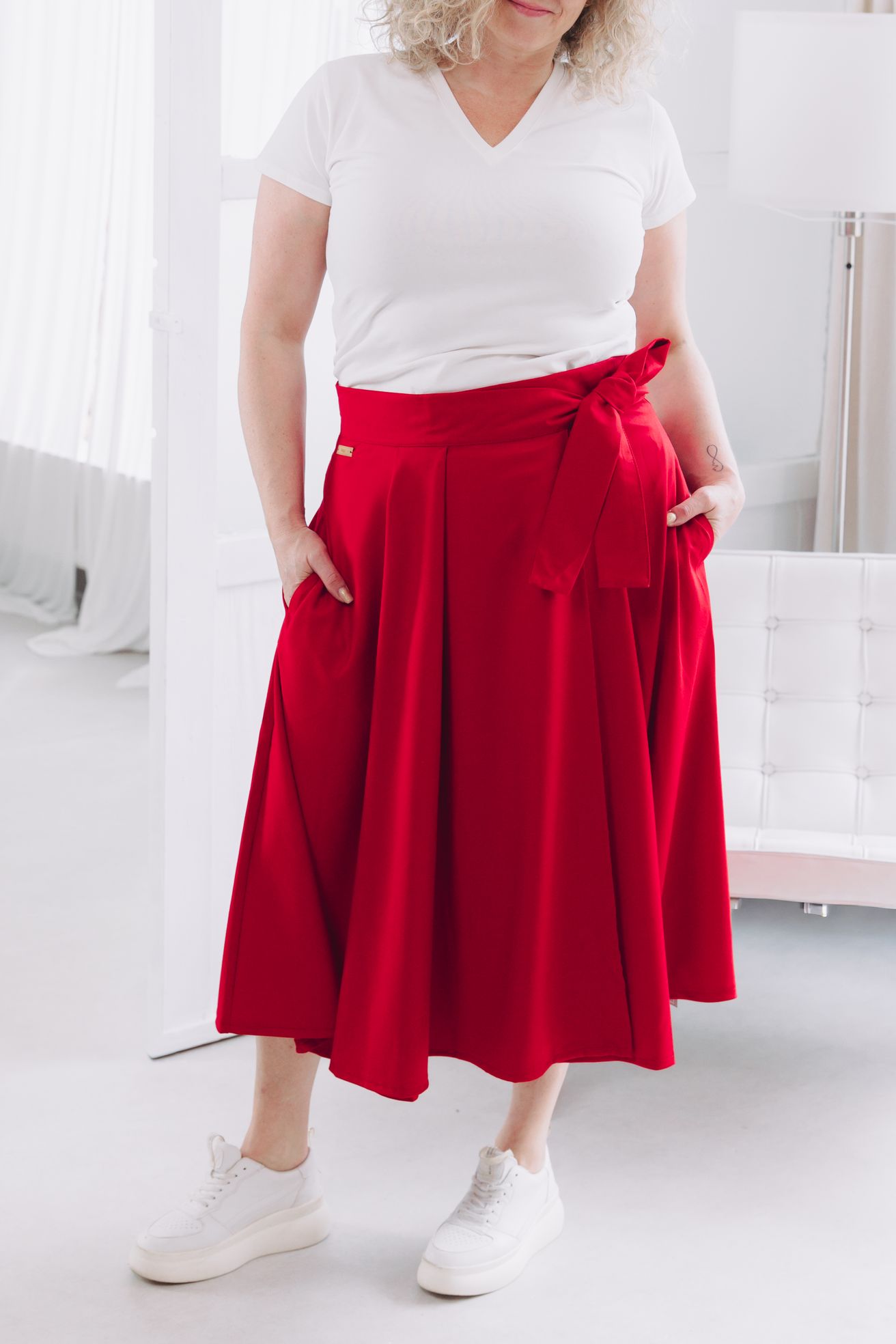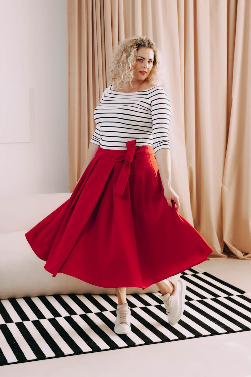 Fantázii sa medze nekladú. Mawe sa ľahko kombinuje s tým, čo už máte v šatníku. V lete ju skombinujte s crop topom, elegantnou košeľou alebo s body. Keď sa ochladí, nebojte sa ju vrstviť - skvele vyzerá s pančuškami, rolákom a koženou bundou. Stuha v páse je dokonalým detailom na uviazanie mašle, ktorá celý outfit posunie na vyššiu úroveň.