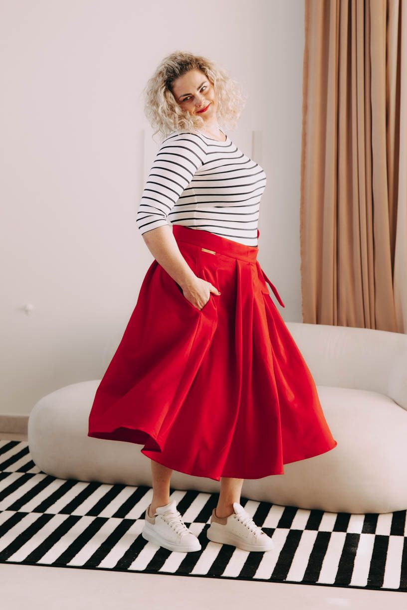 Mawe je múdra spojka medzi pohodlím a štýlom. Vďaka zavinovaciemu strihu sa dokonale prispôsobí vašej postave, mašľa v páse dodá ženský akcent a kvalitný materiál zaistí, že vám vydrží roky. Udržateľná móda? To spĺňa na jednotku. Sukňa pre každú postavu? Rozhodne. Vie zdôrazniť prednosti a šikovne zakryť, čo je potrebné. Jednoducho, obľúbená sukňa po celý rok.