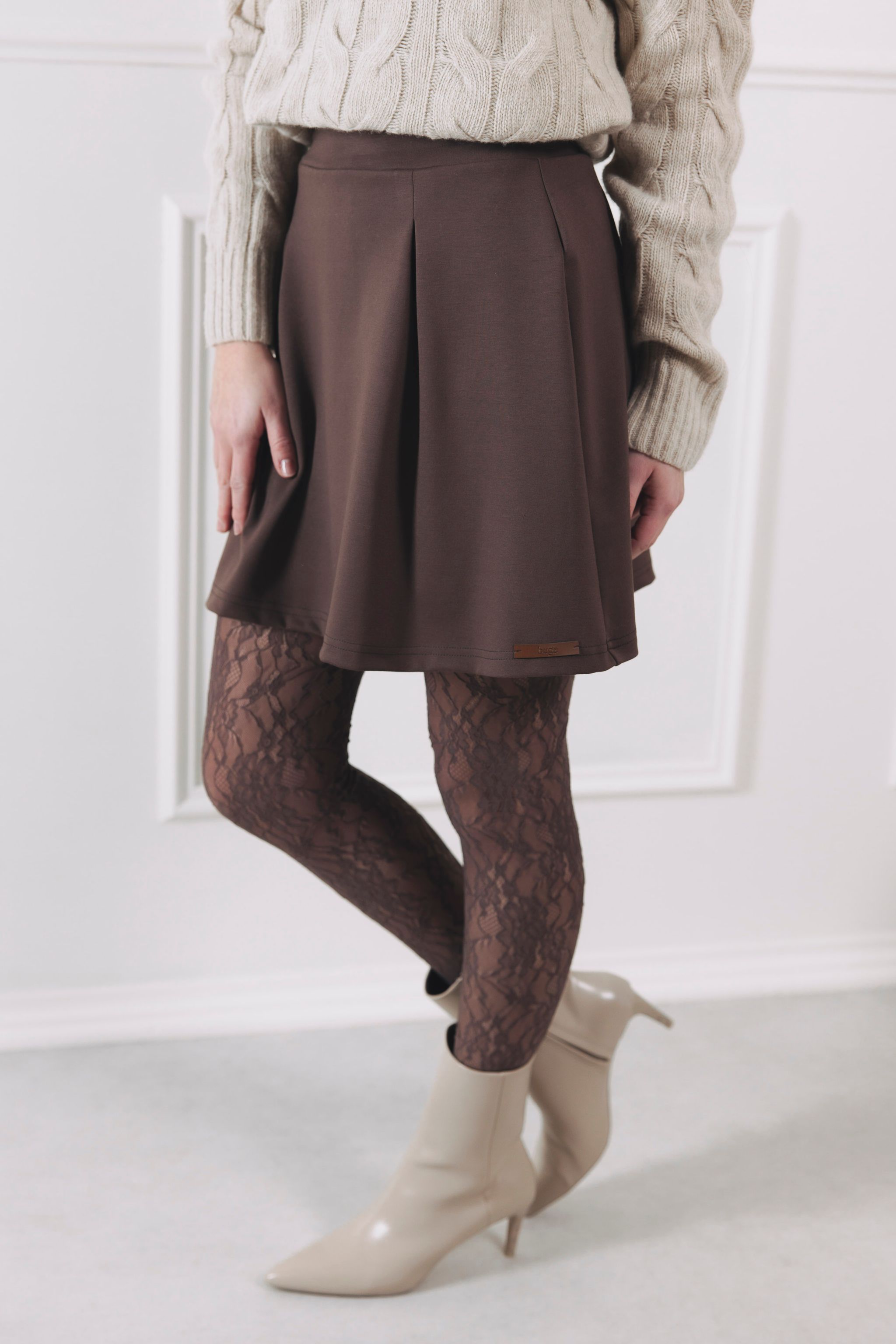 Zima a krátke sukne? Pff, zabudnite na módne pravidlá. S krátkou sukňou Nilaja naopak odštartujete najviac šik sezónu. Stačí obliecť vzorované pančuchy, obuť kvalitné vysoké čižmy a ovládanie mestských ulíc bude hračka. Nilaja je stelesnením nadčasového štýlu. Vďaka luxusnému materiálu a sofistikovanému strihu sa stane obľúbenou hviezdou vášho minimalistického šatníka. Je to investícia do českej módy a kvality, ktorú spoznáte na prvý dotyk.