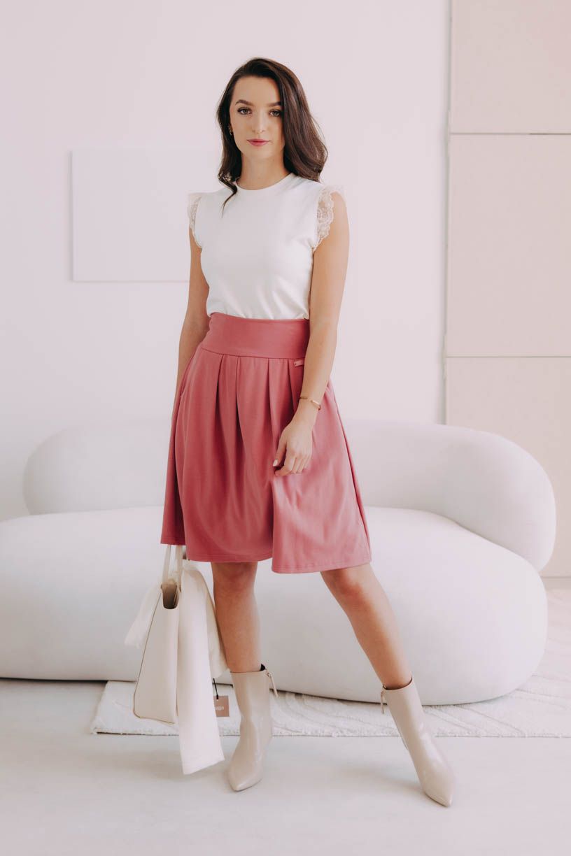 Ružová vykúzli hviezdny outfit v kombinácii s minimalistickou bielou, béžovou, ale aj s výraznejšími farbami. Skombinujte ju s teplými pančuchami a na zimných prechádzkach po meste vďaka svojmu materiálu spoľahlivo zahreje. V lete sukňa zažiari na fotkách z výletov, na terase s kamarátkou a Aperolom v ruke či pri pikniku v parku.