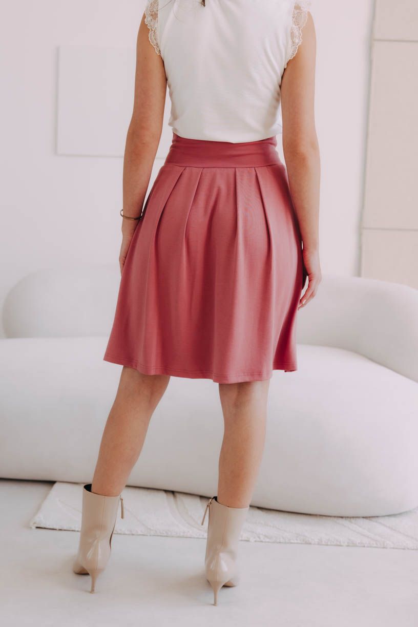 Ružová sukňa Thema vám vďaka vyššiemu pásu a áčkovému strihu vykúzli postavičku ako lusk. Naviac sa nekrčí, ani keď si ráno postojíte v kolóne.