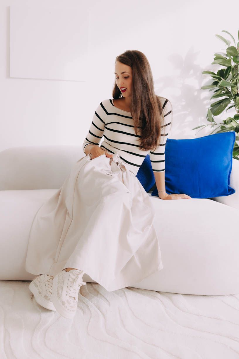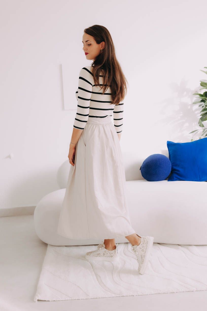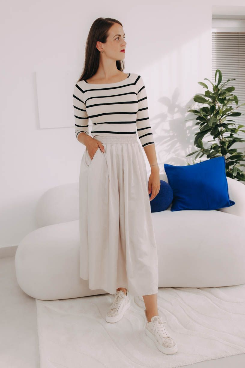 Praktické vrecká oceníte na drobnosti, alebo v nich môžete schovať ruky v chladnejších dňoch. Tumpe je totiž ideálnou sukňou aj pre také tie nevyspytateľné jesenné dni, kedy sa už hodí obuť biker boots alebo čižmy a mať po ruke nejakú ľahkú koženkovú bundu alebo džínsku. Módnym kreáciám sa však medze nekladú – veľmi šik budete vyzerať aj v obopnutom body a teniskách, alebo s oversized svetrom doplneným o členkové topánky.