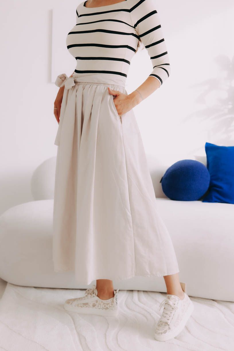 Ako je u Bugy zvykom, ide o veľmi príjemný kúsok - o pohodlie sa postará pružná guma v páse, vďaka ktorej sukňa skvele drží, vytvára decentné riasenie a môžete sa pohrať aj s podkasaním trička alebo košele.rajte sa a kombinujte - šaty s doplnkami, nohavicami, pančuchami, s vysokými podpätkami či teniskami.