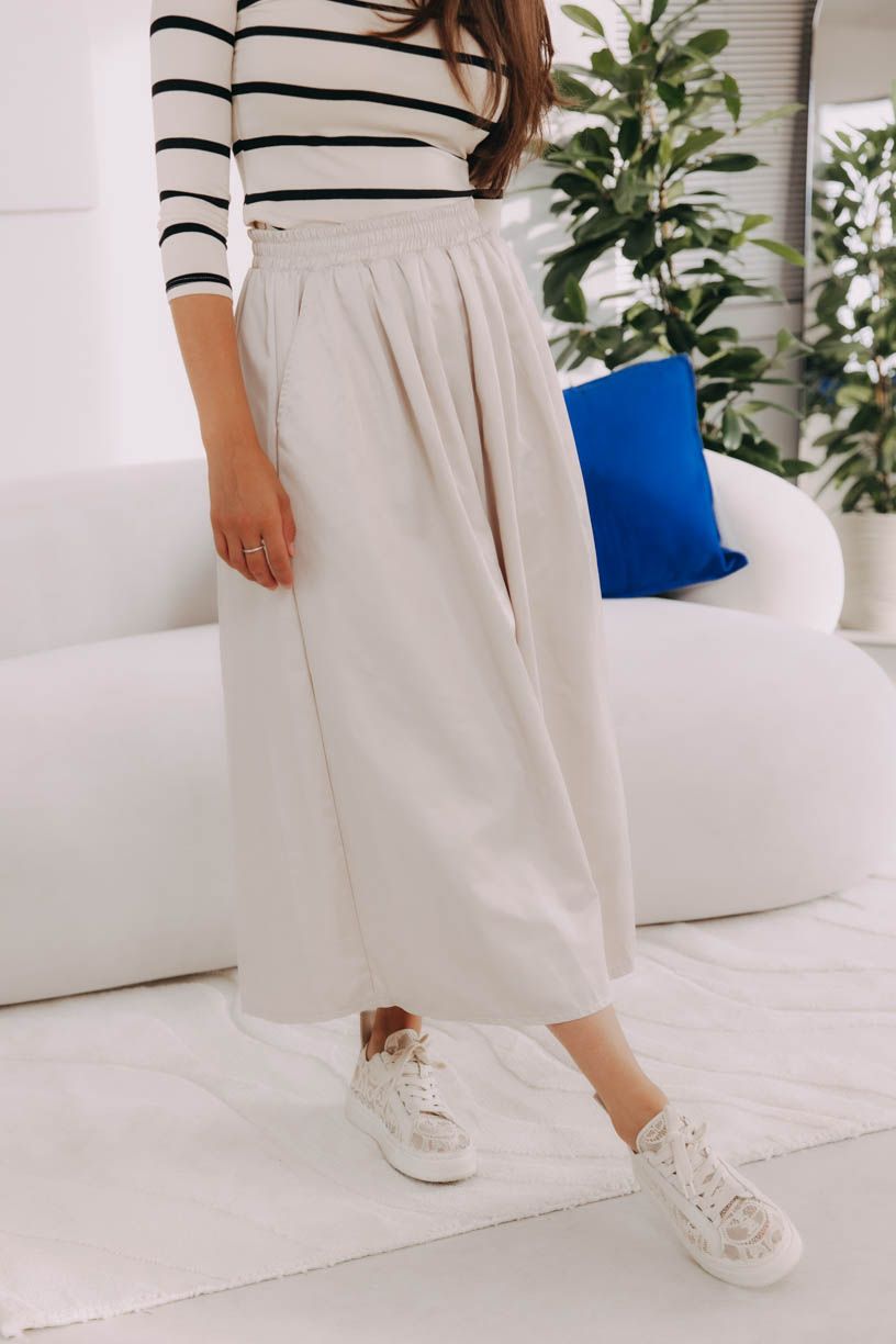 Midi sukňa Tumpe poteší každú aktívnu ženu svojím odolným materiálom, príjemnou a pružnou gumou v páse a praktickými vreckami. Ideálna aj na jeseň k čižmám.