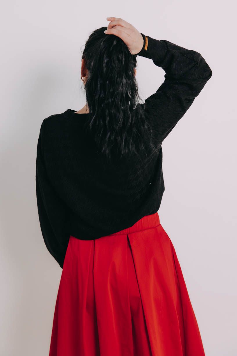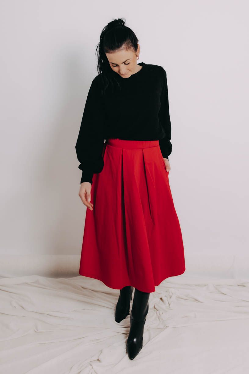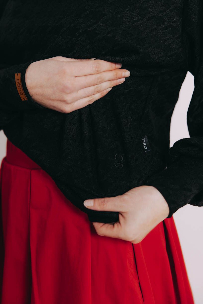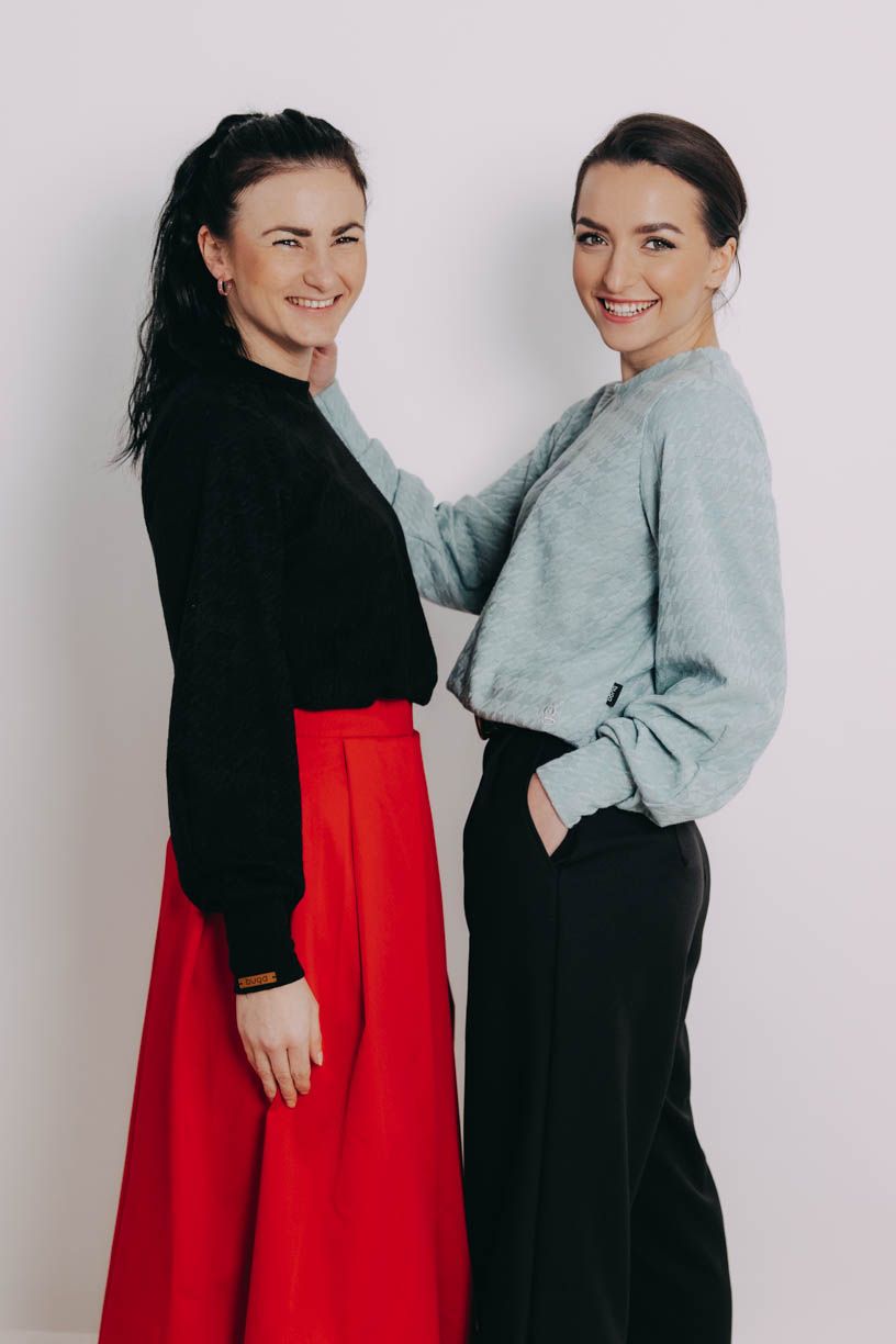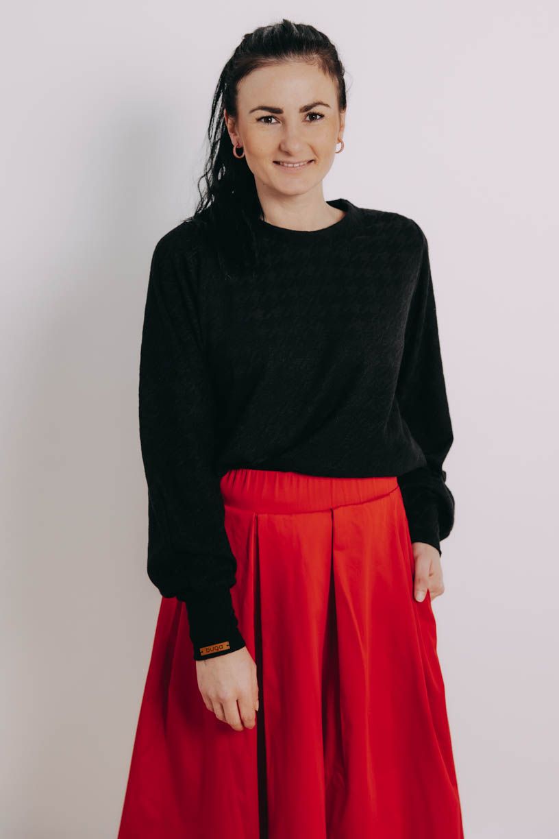 Už niekoľkokrát sme si povedali, že nám trochu chýba univerzálny kúsok, ktorý skombinujeme prakticky so všetkým. Peťa tak začala premýšľať, Verča sadla k šijaciemu stroju a vznikol tento božský sveter Ama, ktorý sme si v Buga zamilovali na prvé oblečenie.
