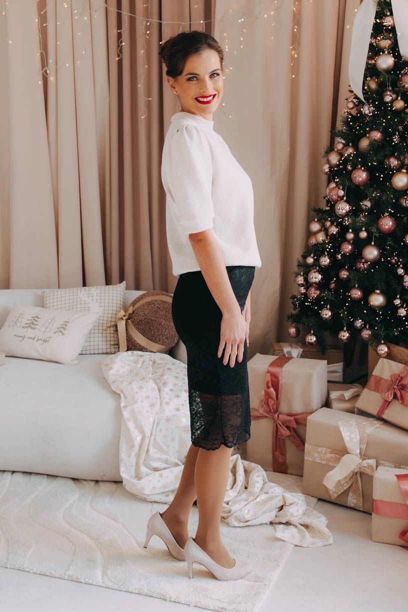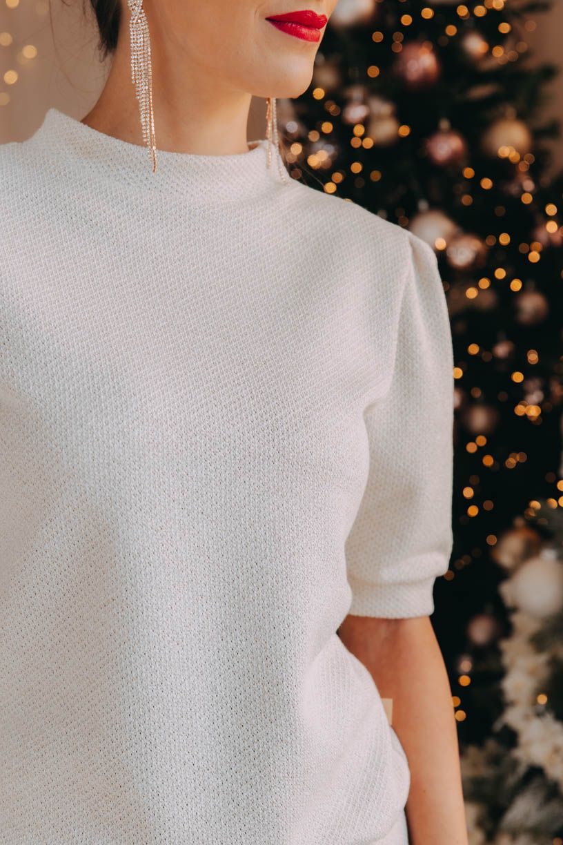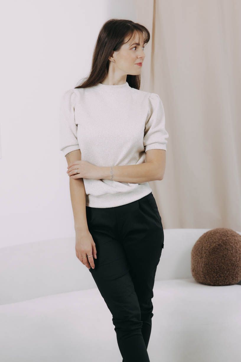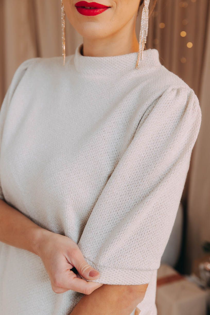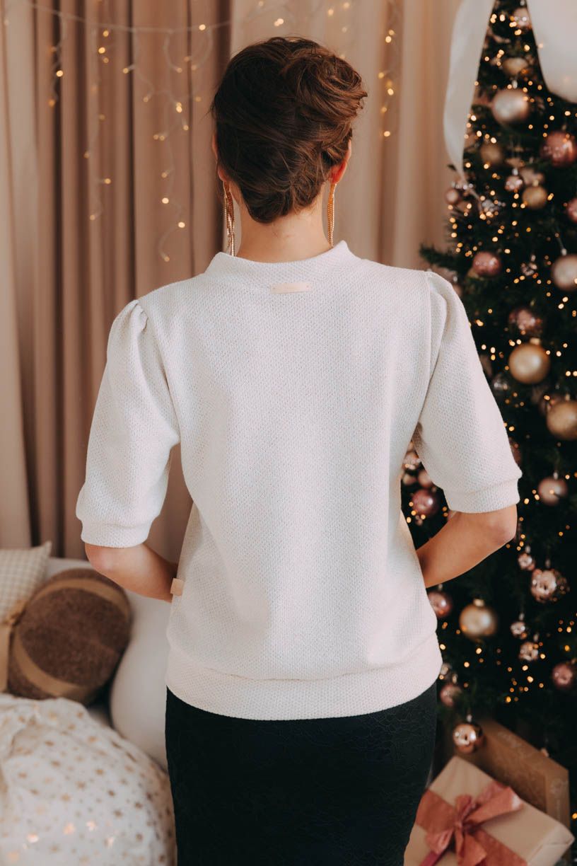 Sveter Winta sa ľahko trbliece a krásne sedí. Elegantné balónové rukávy v dĺžke po lakeť sú pôsobivým prvkom pre každú slávnostnú chvíľu.