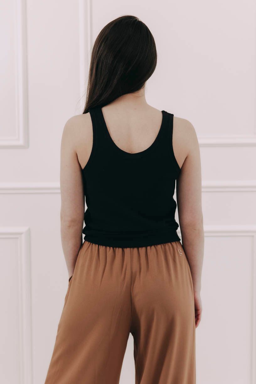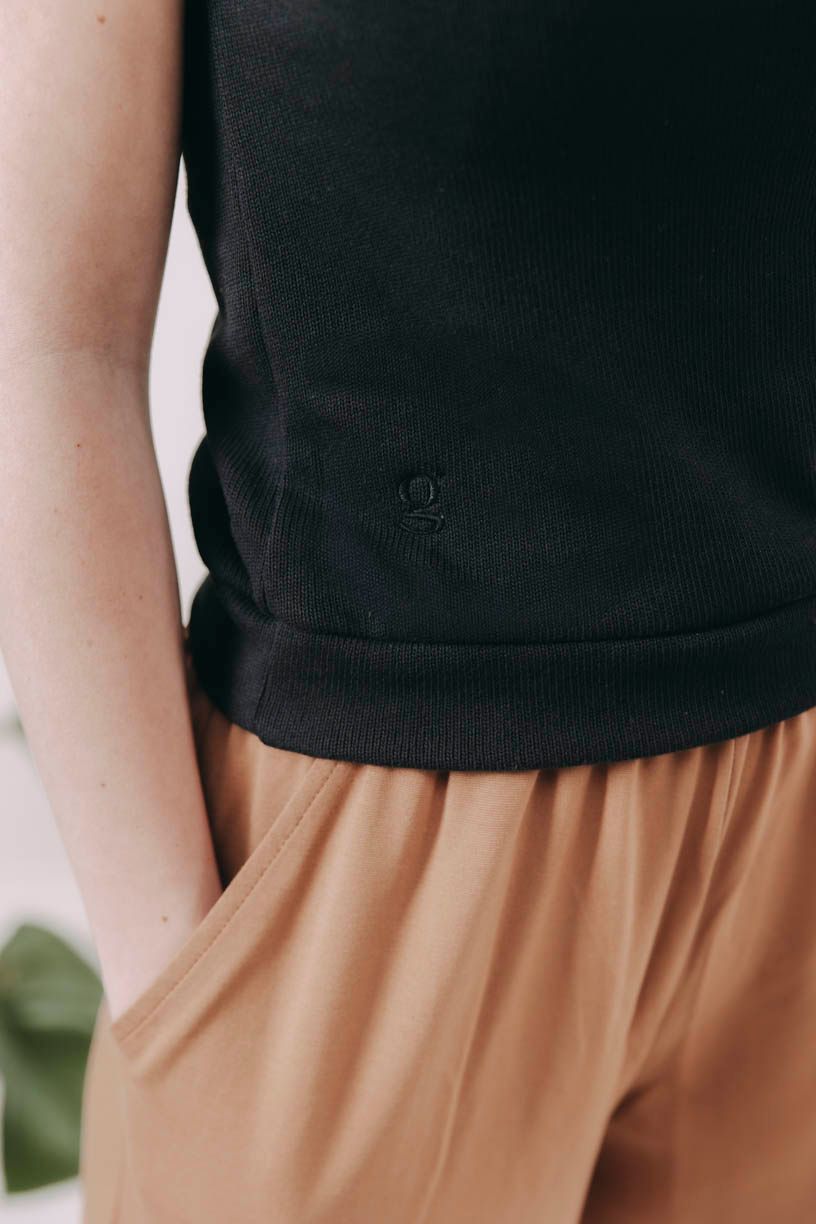 Klasický okrúhly výstrih, optimálne priliehavé prieramky a spodné lemovanie, ktoré crop top efektne zakončuje, robia z Muru basic kúsok, podporený neutrálnou a skvele kombinovateľnou čiernou farbou.