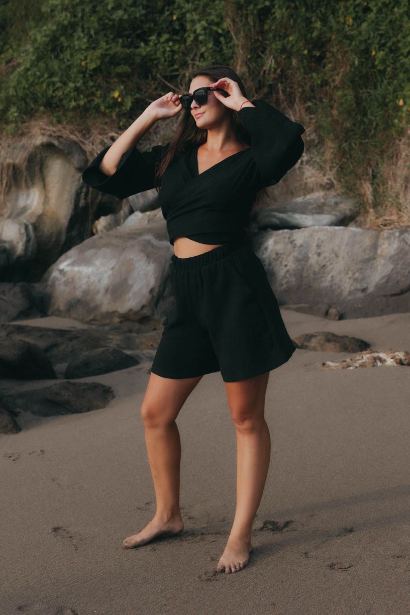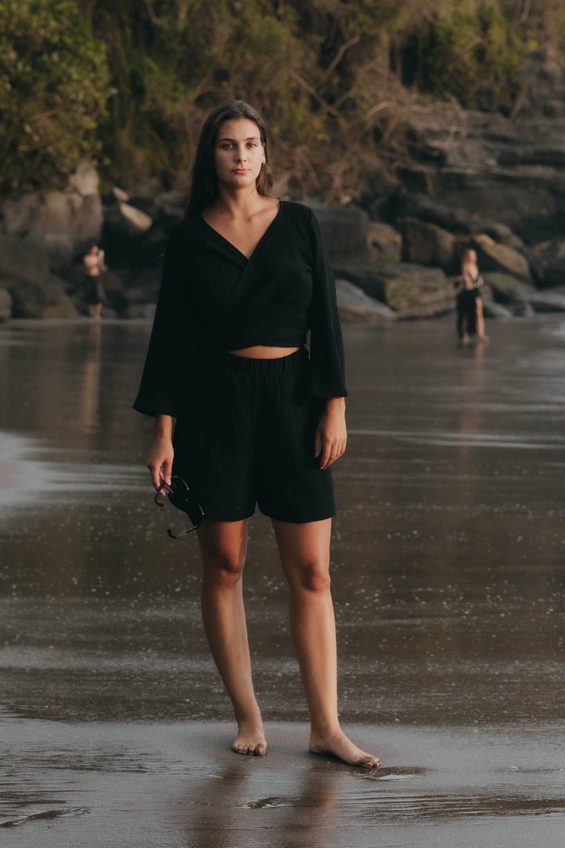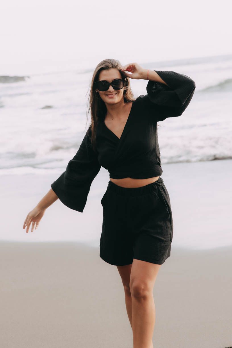 Perfektne vyzerá v kombinácii s kraťasmi Akosua, ale krásne doplní aj outfity postavené na maxi sukniach alebo nohaviciach.