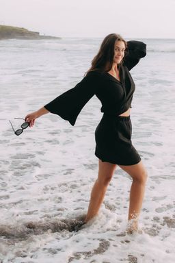 Perfektne vyzerá v kombinácii s kraťasmi Akosua, ale krásne doplní aj outfity postavené na maxi sukniach alebo nohaviciach.