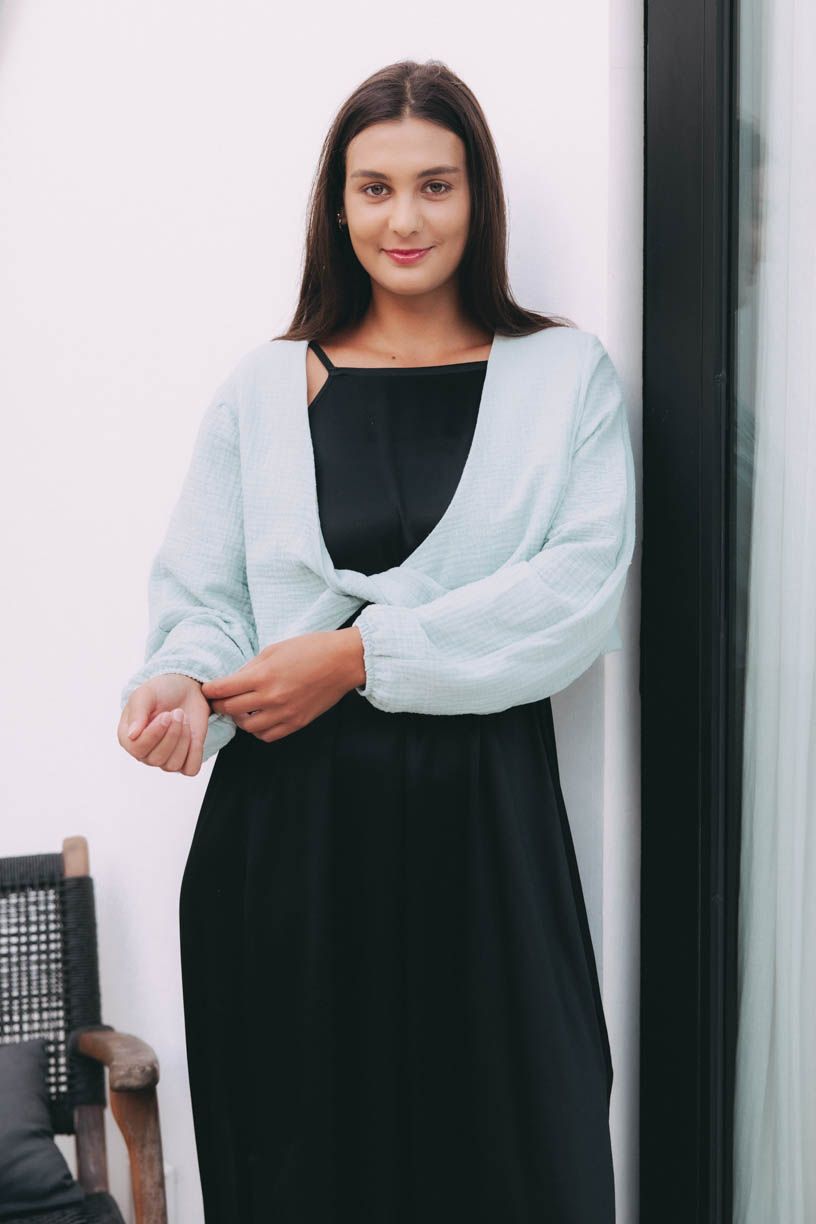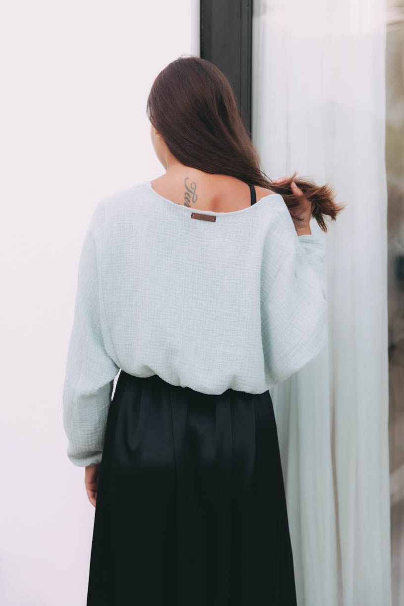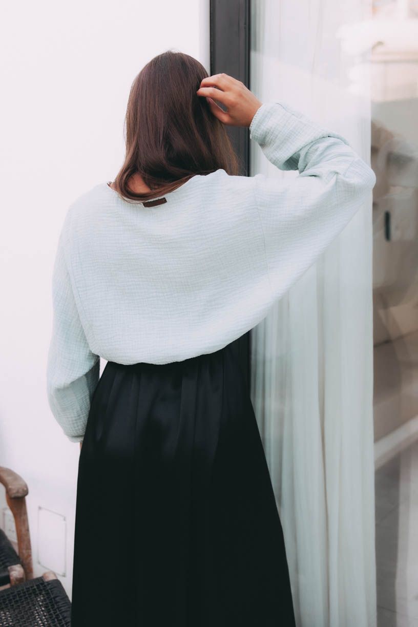 Atai sa stane vaším obľúbencom v okamihu, keď ho vyberiete z balíčka a jemne pritlačíte k tvári. Mušelín je nežná letná nevyhnutnosť, a preto sme sa rozhodli ho využiť aj na tento trochu netypický strih topu Atai.