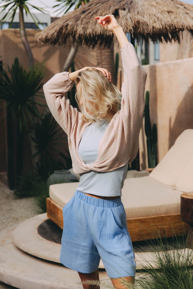 Atai sa stane vaším obľúbencom v okamihu, keď ho vyberiete z balíčka a jemne pritlačíte k tvári. Mušelín je nežná letná nevyhnutnosť, a preto sme sa rozhodli ho využiť aj na tento trochu netypický strih topu Atai.