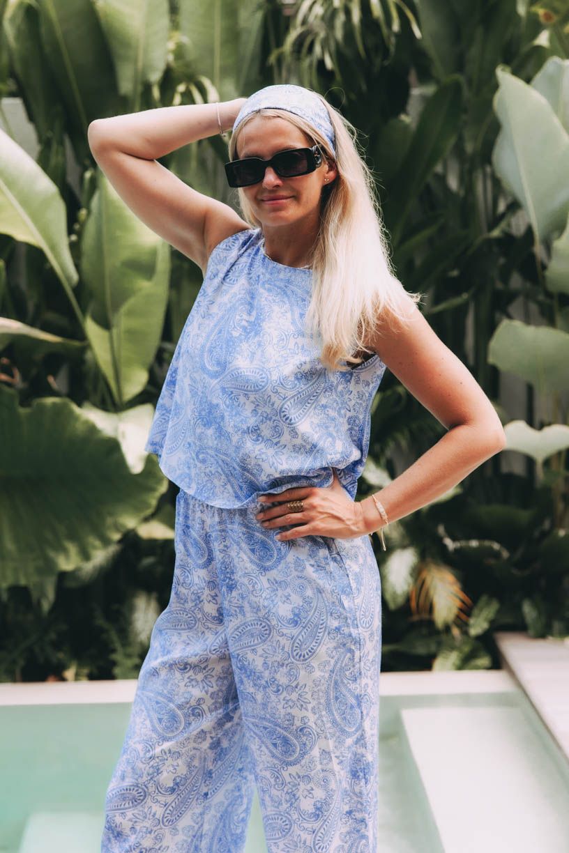 Top Gede je lahôdkou pre všetkých, ktorí majú vycibrený vkus. Originálny strih chrbta a jemná modro-biela kombinácia v orientálnom paisley vzore povýši váš outfit na nový level.
