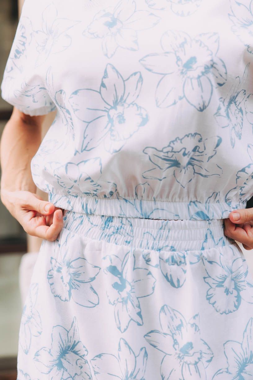 Širší okrúhly výstrih dokonale dopĺňajú voľné balónové rukávy zakončené riasením a gumou, rovnako ako spodný lem. Máte tak úplne vo svojej réžii, ako silný efekt podkasania vykúzlite.